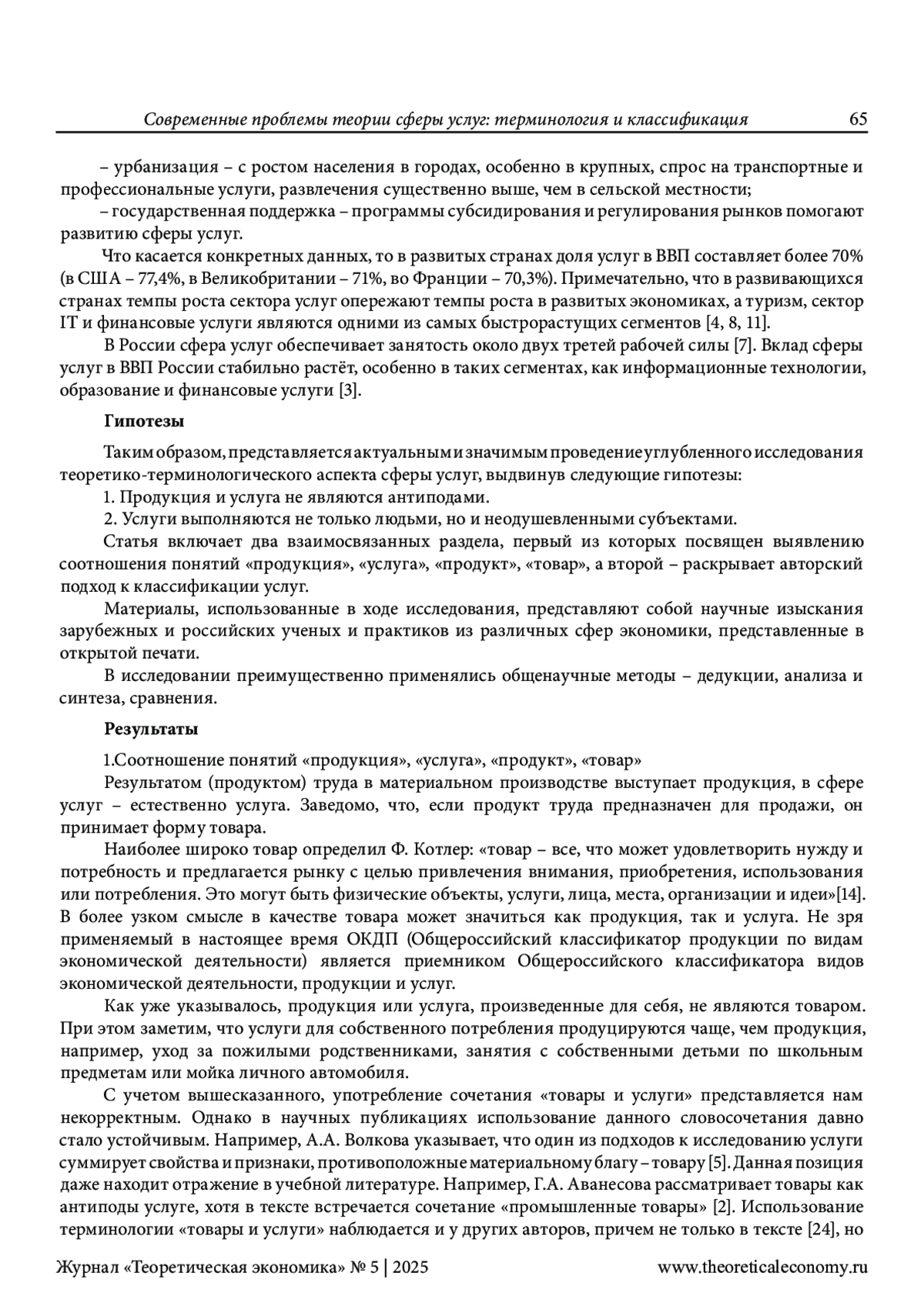5. Волкова А.А. Сфера услуг: теоретический анализ / А.А. Волкова // Известия СПбГЭУ. - 2014. - № 4(88). - С. 11-16.