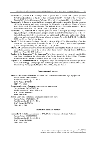 12. Соболев В. И. К вопросу о керамике барабинских татар // Памятники истории и культуры Омской области. Омск: ОмГу, 1989. Вып. 2. С. 43-46.
