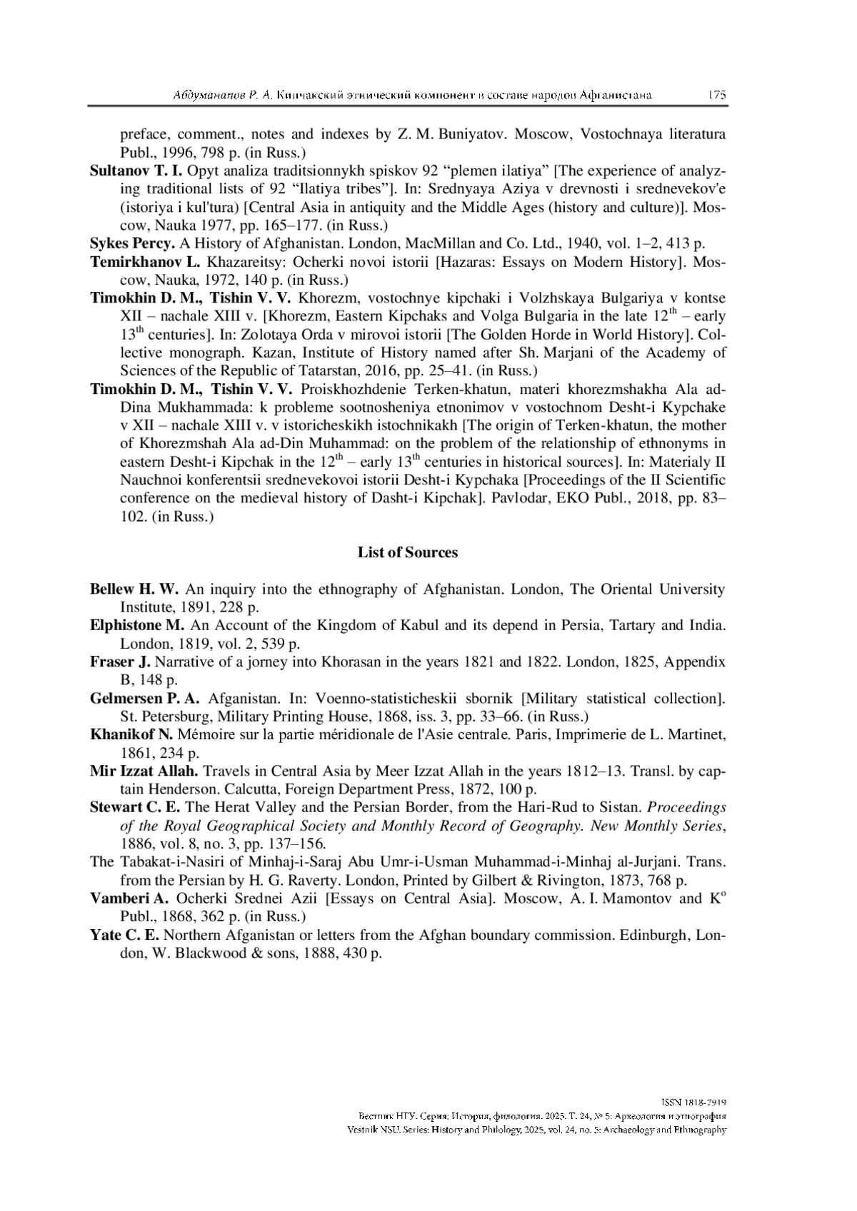 30. Тимохин Д. М., Тишин В. В. Происхождение Теркен-хатун, матери хорезмшаха Ала ад-Дина Мухаммада: к проблеме соотношения этнонимов в восточном Дешт-и Кыпчаке в XII - начале XIII в. в исторических источниках // Материалы II Научн. конф. средневековой истории Дешт-и Кыпчака. Павлодар: ЭКО, 2018. С. 83-102.
