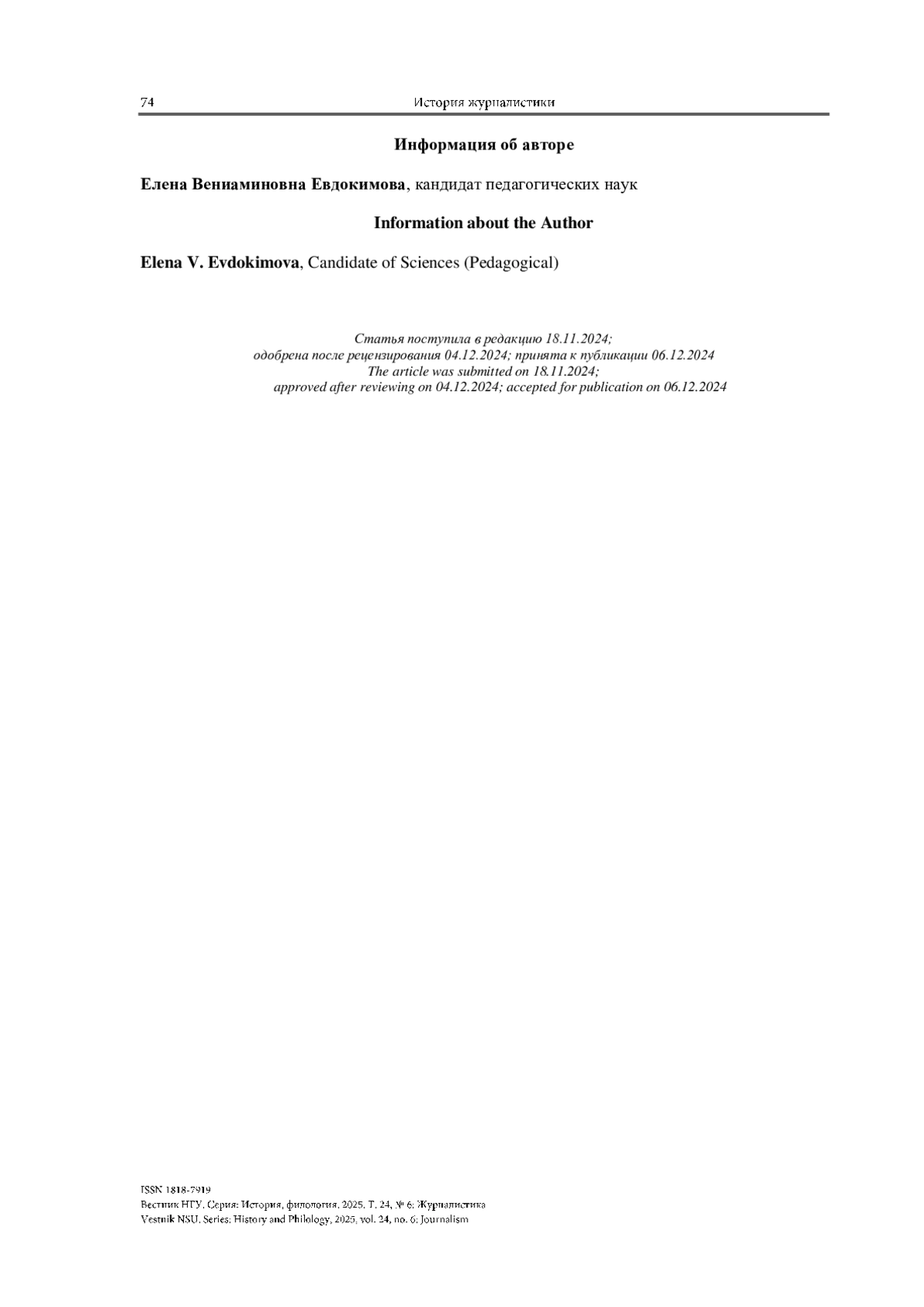 8. Сафонов Д. А. Социально-демографический портрет провинциальных журналистов конца 1920-х - начала 1930-х годов (на материалах Оренбургской области) // Научный диалог. 2024. Т. 13, № 6. С. 456-477. https://doi.org/10.24224/2227-1295-2024-13-6-456-477