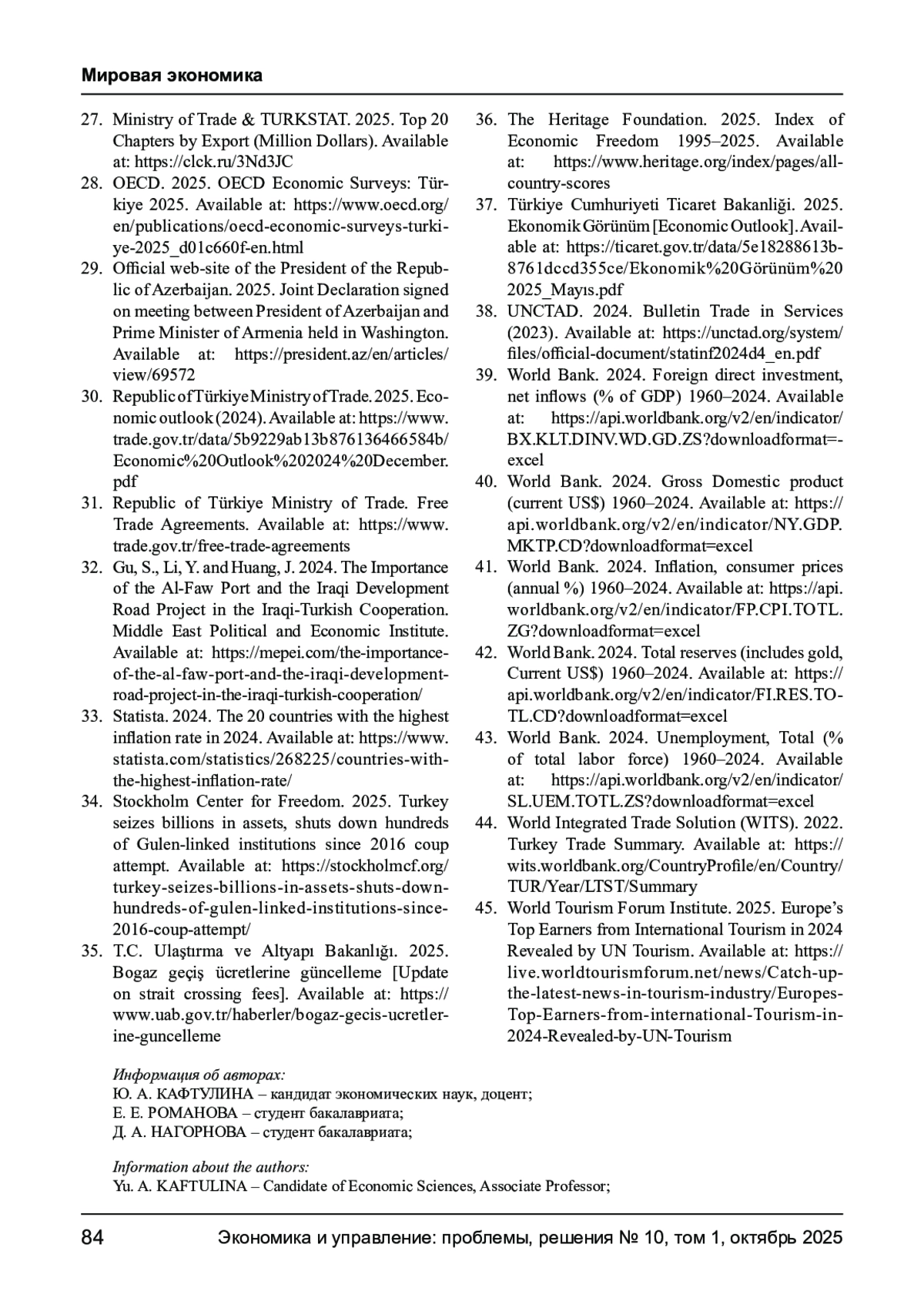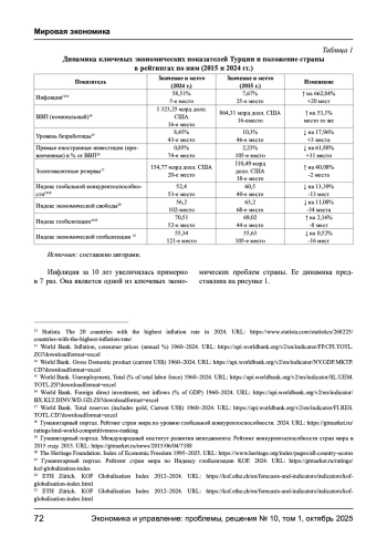 30. Economic outlook (2024) [Electronic resource] // Republic of Türkiye Ministry of Trade. - 2025. - URL: https://www.trade.gov.tr/data/5b9229ab13b876136466584b/Economic%20Outlook%202024%20December.pdf.