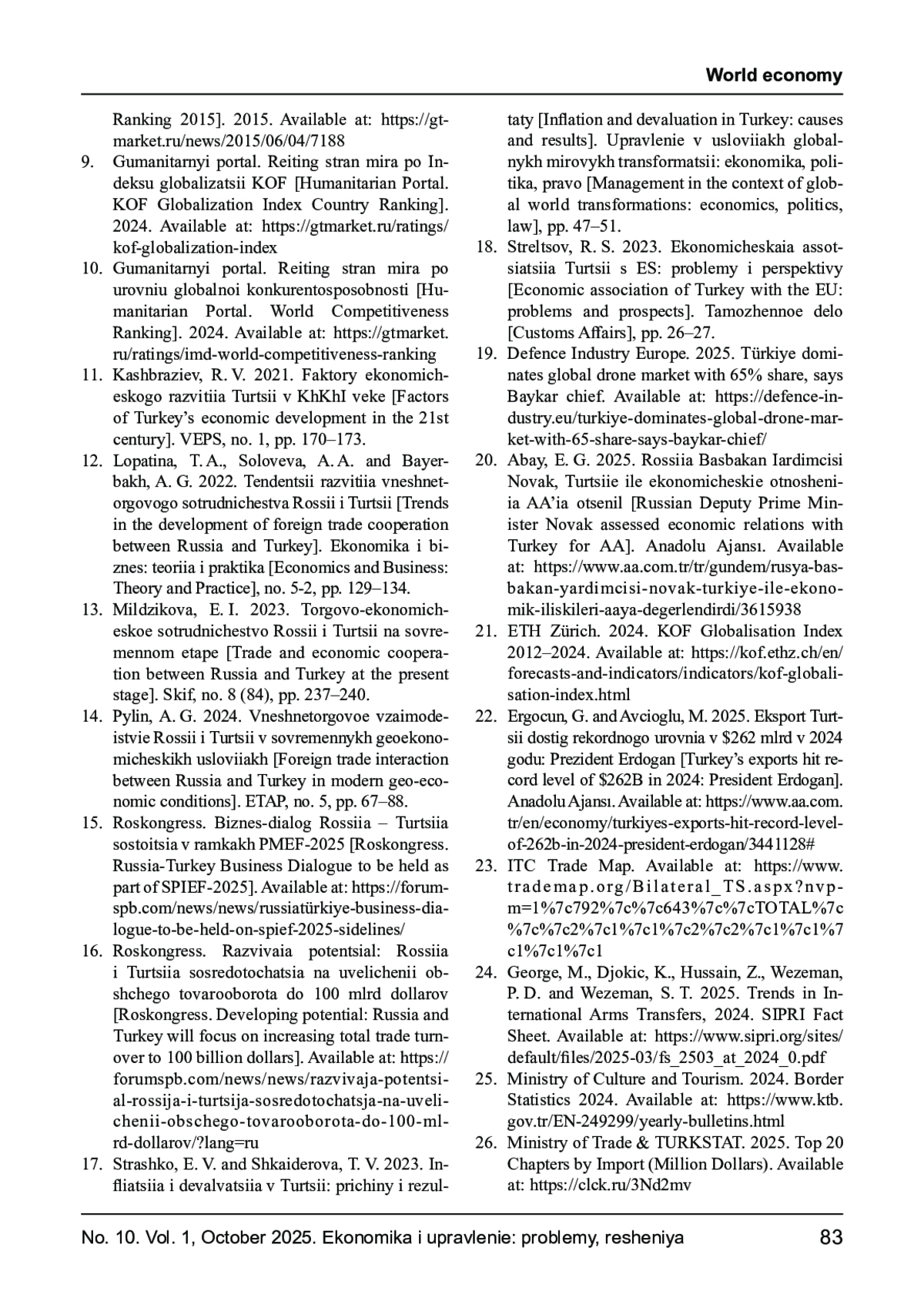 20. Abay E. G.Rusya Başbakan Yardımcısı Novak, Türkiye ile ekonomik ilişkileri AA’ya değerlendirdi [Electronic resource] // Anadolu Ajansı. - 2025. - URL: https://www.aa.com.tr/tr/gundem/rusya-basbakan-yardimcisi-novak-turkiye-ile-ekonomik-iliskileri-aaya-degerlendirdi/3615938.