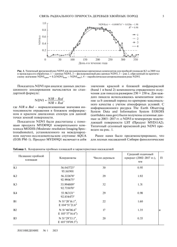 Статья: СВЯЗЬ РАДИАЛЬНОГО ПРИРОСТА ДЕРЕВЬЕВ ХВОЙНЫХ ПОРОД И НОРМАЛИЗОВАННОГО РАЗНОСТНОГО ВЕГЕТАЦИОННОГО ИНДЕКСА (2023)