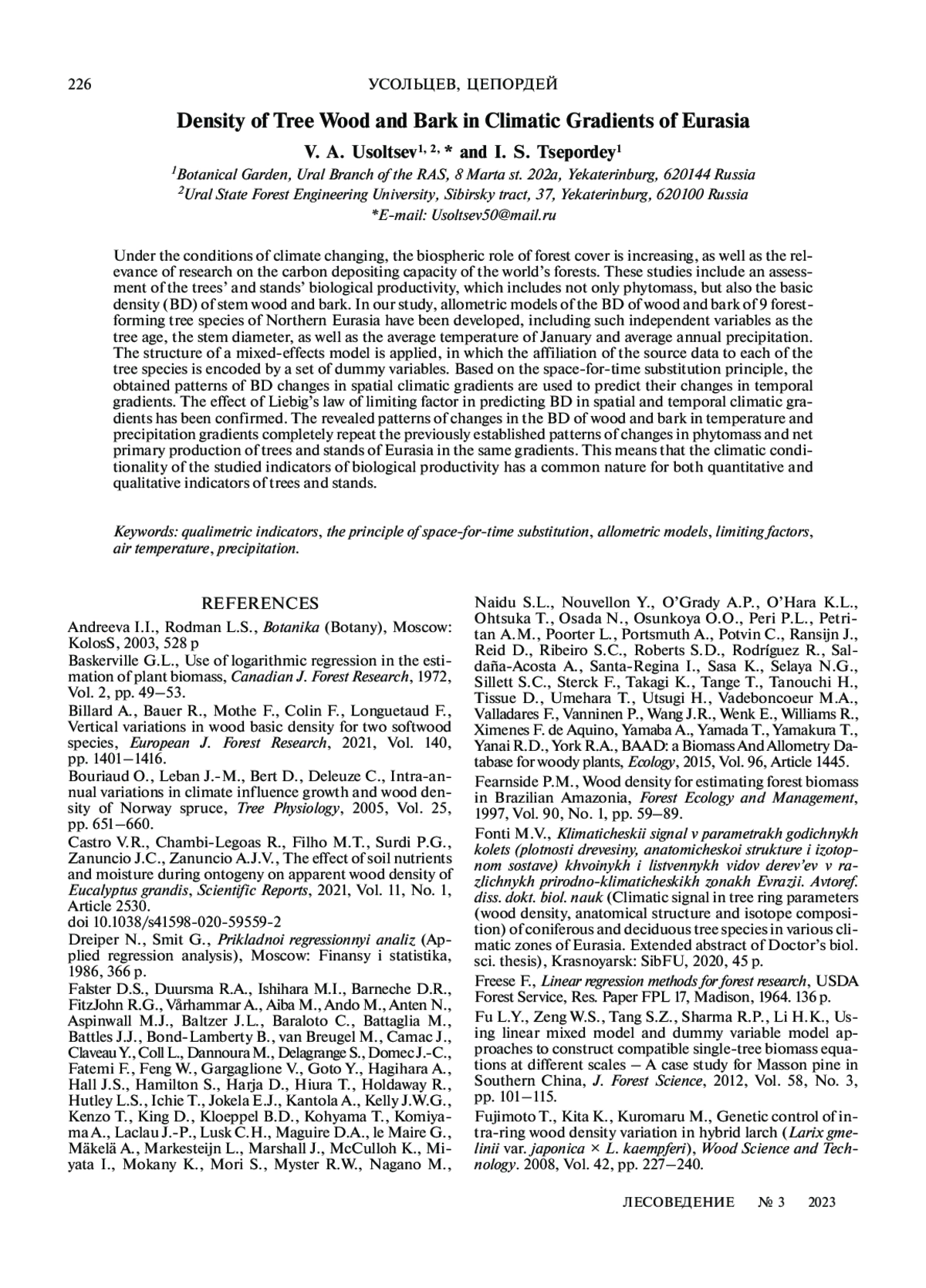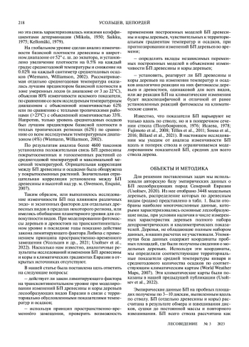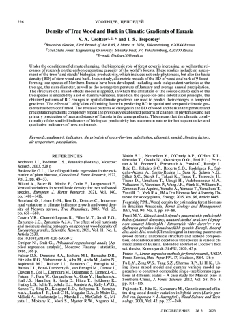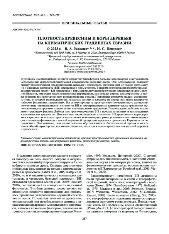 Статья: ПЛОТНОСТЬ ДРЕВЕСИНЫ И КОРЫ ДЕРЕВЬЕВ НА КЛИМАТИЧЕСКИХ ГРАДИЕНТАХ ЕВРАЗИИ (2023)