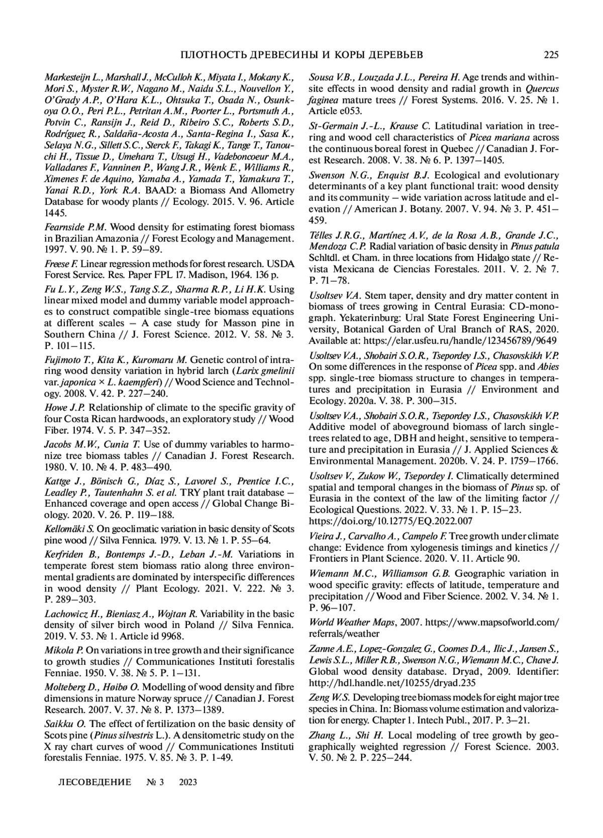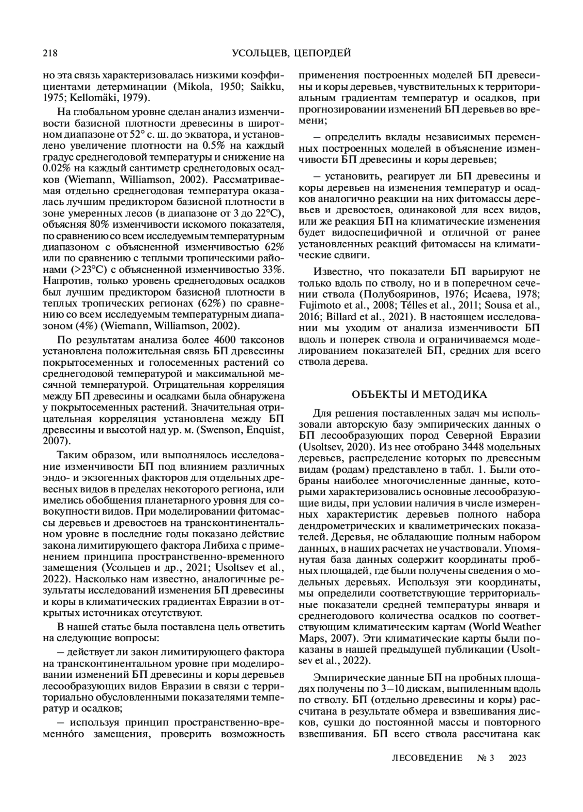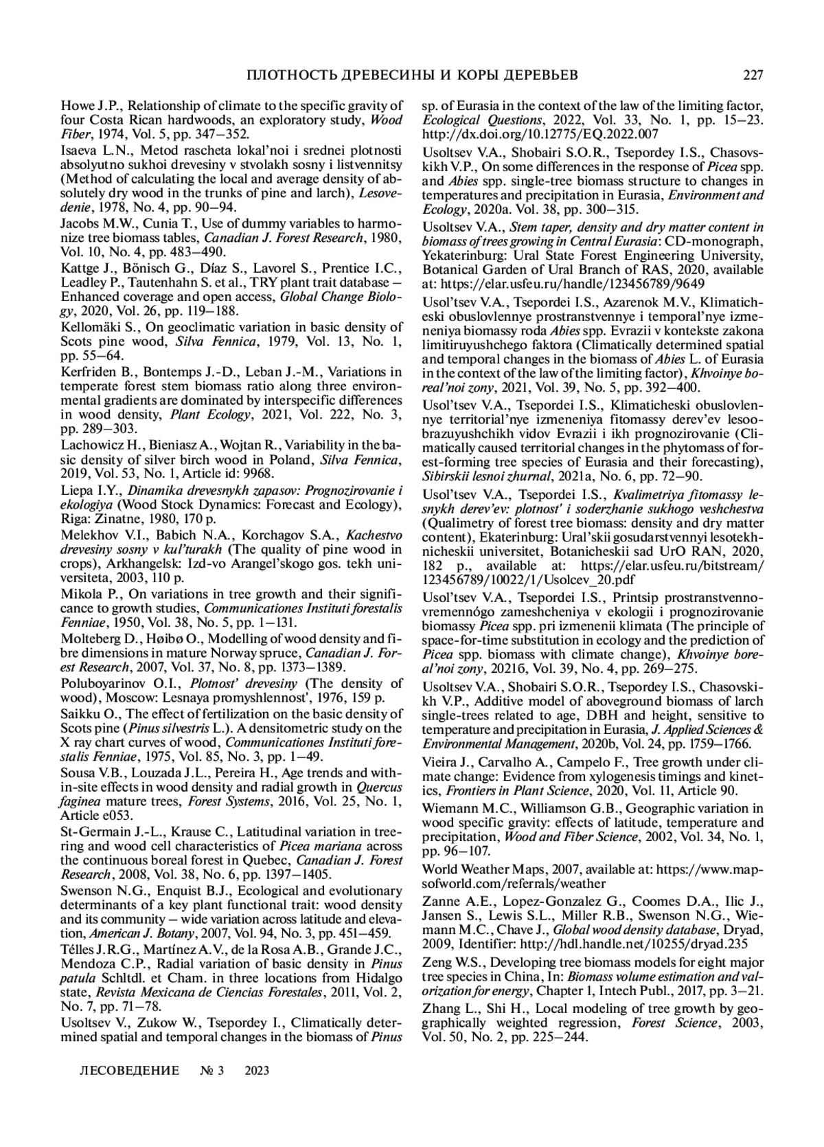 УСОЛЬЦЕВ В. А., ЦЕПОРДЕЙ И. С. ПЛОТНОСТЬ ДРЕВЕСИНЫ И КОРЫ ДЕРЕВЬЕВ НА КЛИМАТИЧЕСКИХ ГРАДИЕНТАХ ЕВРАЗИИ // ЛЕСОВЕДЕНИЕ. 2023. № 3