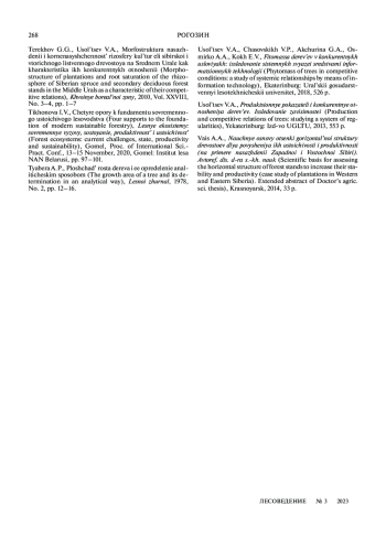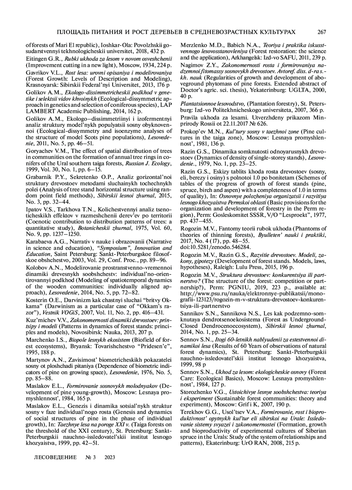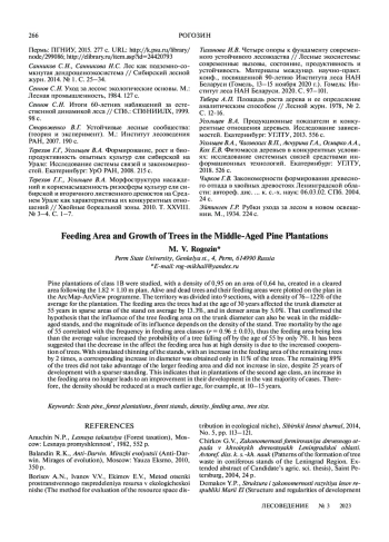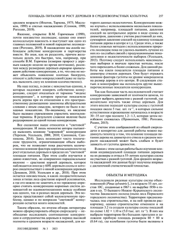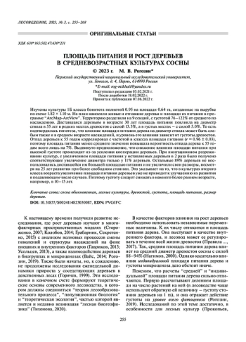 Статья: ПЛОЩАДЬ ПИТАНИЯ И РОСТ ДЕРЕВЬЕВ В СРЕДНЕВОЗРАСТНЫХ КУЛЬТУРАХ СОСНЫ (2023)
