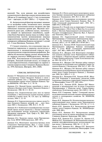 6. Битюков Н.А. Экология горных лесов Причерноморья. Сочи: ФГБУ НИИгорлесэкол, 2007. 397 с.