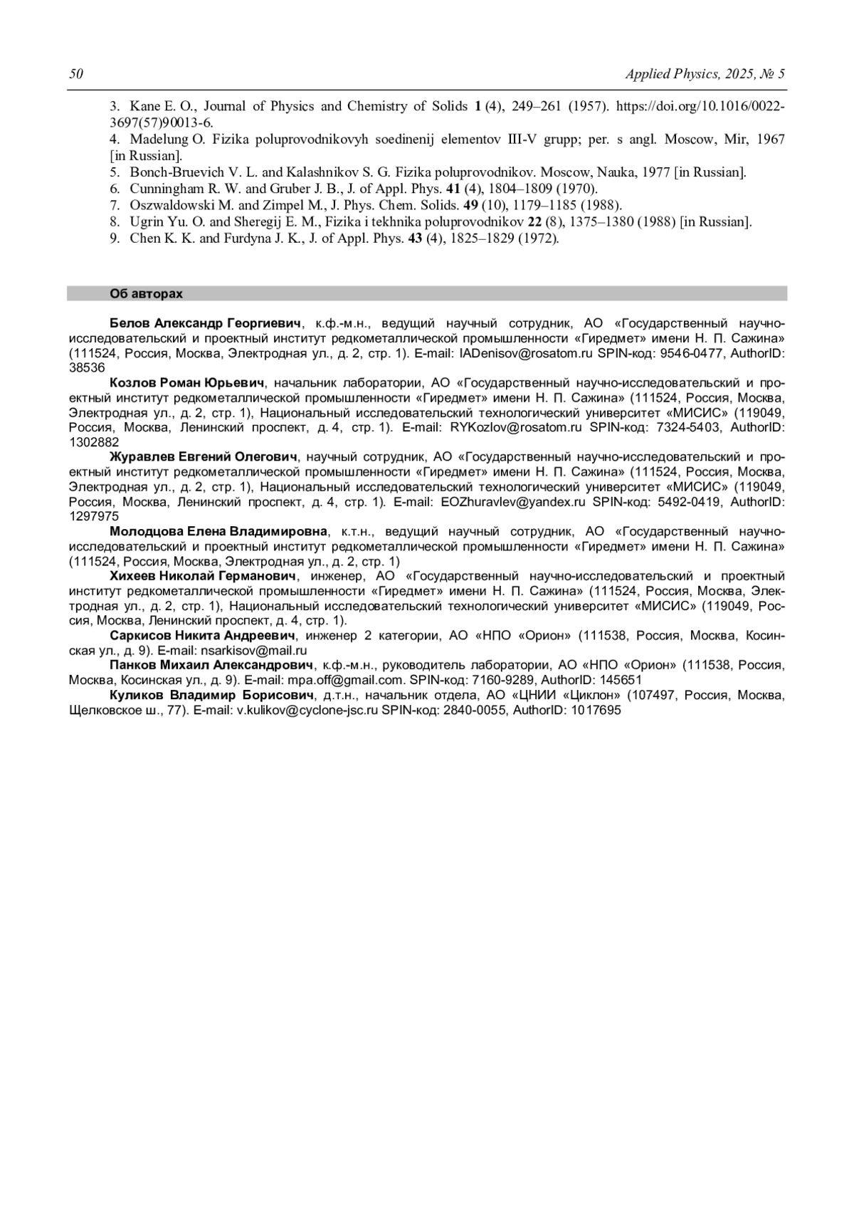 Белов А. Г., Козлов Р. Ю., Журавлев Е. О., Молодцова Е. В., Хихеев Н. Г., Саркисов Н. А., Панков М. А., Куликов В. Б.