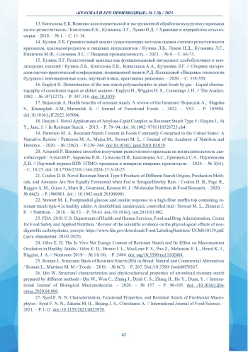 25. Roman L. Structural Basis of Resistant Starch (RS) in Bread: Natural and Commercial Alternatives / Roman L., Martinez M. M // Foods. - 2019. - № 8(7). - Р. 267. /. DOI: 10.3390/foods8070267