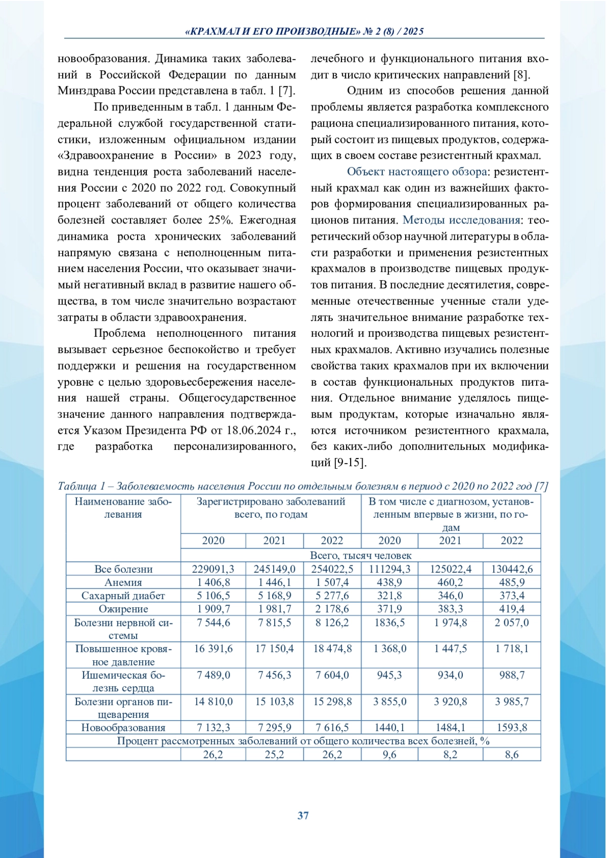 33. Малютенкова С. М. Природные резистентные крахмалы для производства пищевых продуктов с функциональными свойствами / Малютенкова С. М. // Сборник научных статей 13-й Международной научно - практической конференции “Актуальные проблемы международных отношений в условиях формирования мультиполярного мира”. - 2024. - С. 103-106.