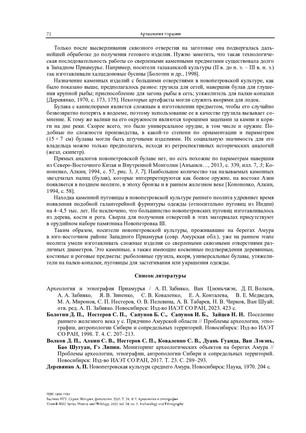 5. Деревянко А. П., Нестеров С. П., Табарев А. В., Алкин С. В., Казунори Учида, Даи Ку никита, Кацуки Морисаки, Хироюки Мацудзаки. Ранненеолитическое поселение Новопетровка III в Западном Приамурье и его хронология // Археология, этнография и ан тропология Евразии. 2020. Т. 48, № 4. С. 57-66. https://doi.org/10.17746/1563-0102.2020.48.4.063-072