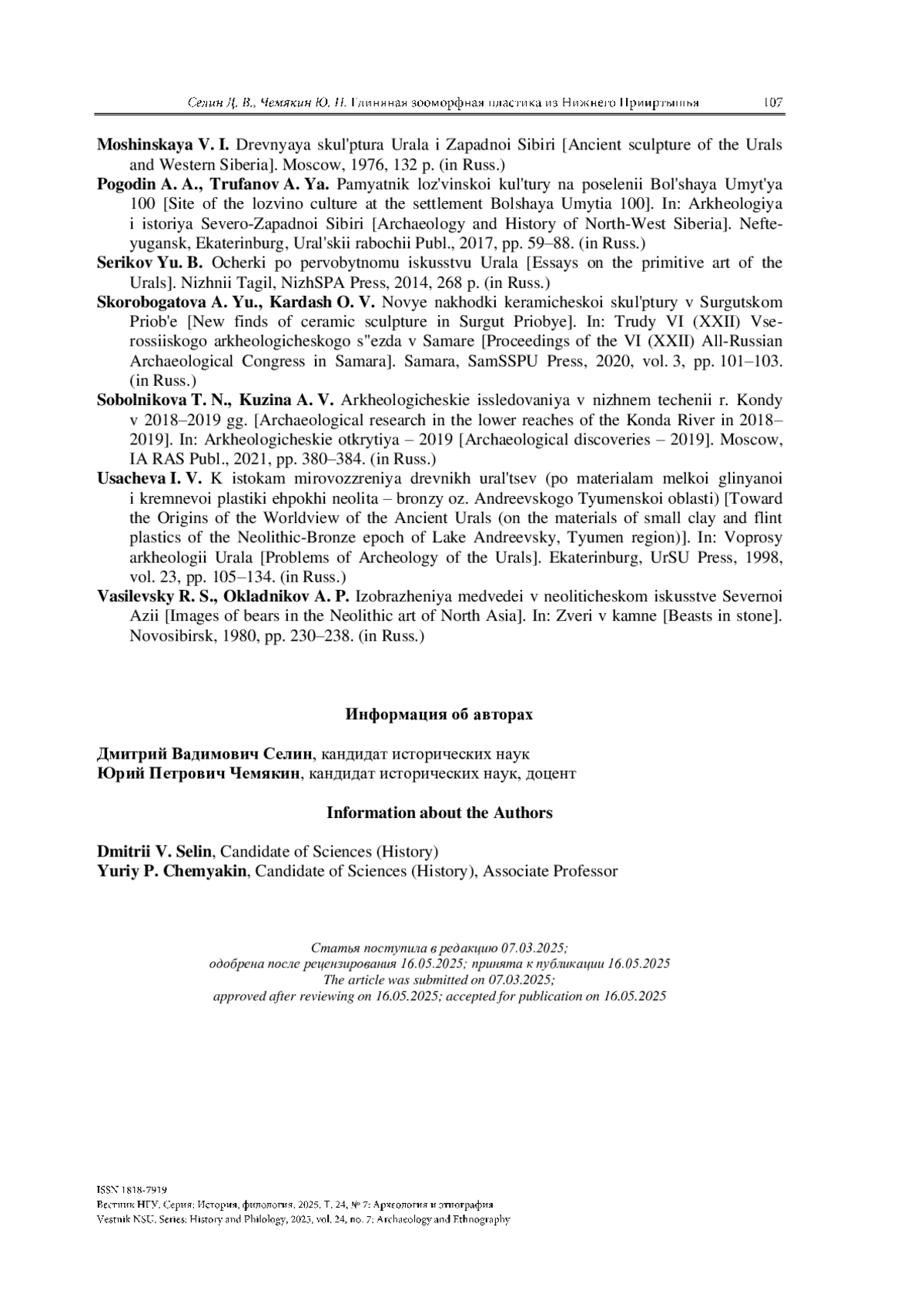 13. Сериков Ю. Б. Очерки по первобытному искусству Урала. Н. Тагил: НижГСПА, 2014. 268 с. Скоробогатова А. Ю., Кардаш О. В. Новые находки керамической скульптуры в Сургутском Приобье // Тр. VI (XXII) Всерос. археол. съезда в Самаре. Самара: СамГСПУ, 2020. Т. 3. С. 101-103.