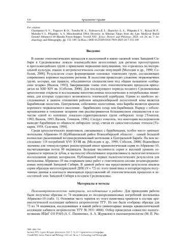 Статья: Разнообразие митохондриальной ДНК сибирских татар из позднесредневекового могильника Абрамово-10 (Барабинская лесостепь) (2025)