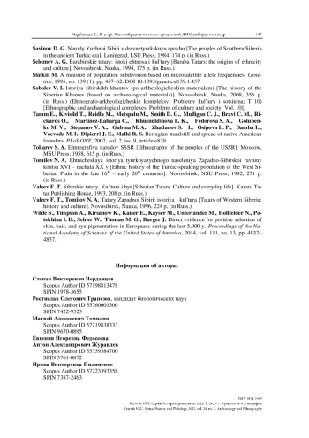 Ключевые фразы: сибирские татары, барабинская лесостепь, ПОЗДНЕЕ СРЕДНЕВЕКОВЬЕ, палеогенетика, митохондриальная днк, этногенетические реконструкции