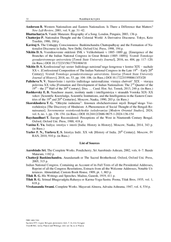 4. Никитин Д. С. Конфессиональный состав Индийского национального конгресса в конце XIX - начале XX в. // Вестник Том. гос. ун-та. История. 2018. № 53. С. 104-106. https://doi.org/10.17223/19988613/53/20