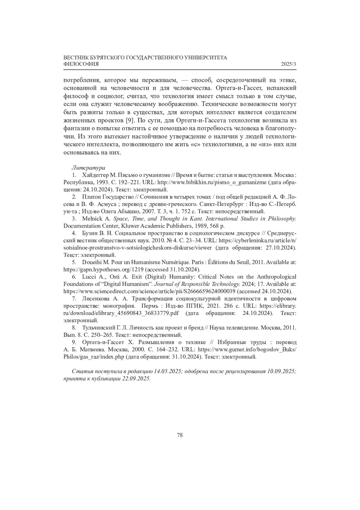 6. Lucci A., Osti A. Exit (Digital) Humanity: Critical Notes on the Anthropological Foundations of “Digital Humanism”. Journal of Responsible Technology. 2024; 17. Available at: https://www.sciencedirect.com/science/article/pii/S2666659624000039 (accessed 24.10.2024).