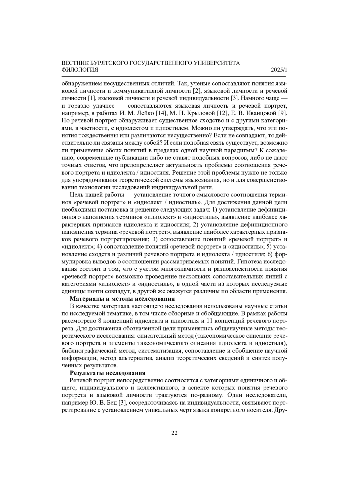 Статья: СООТНОШЕНИЕ ПОНЯТИЙ «ИДИОЛЕКТ / ИДИОСТИЛЬ» И «РЕЧЕВОЙ ПОРТРЕТ» В СОВРЕМЕННОМ ОТЕЧЕСТВЕННОМ ЯЗЫКОЗНАНИИ (2025)