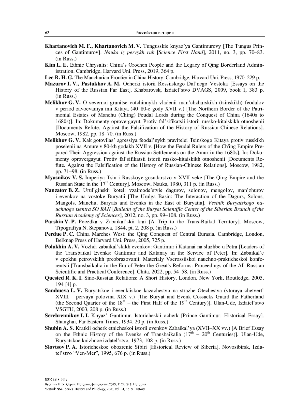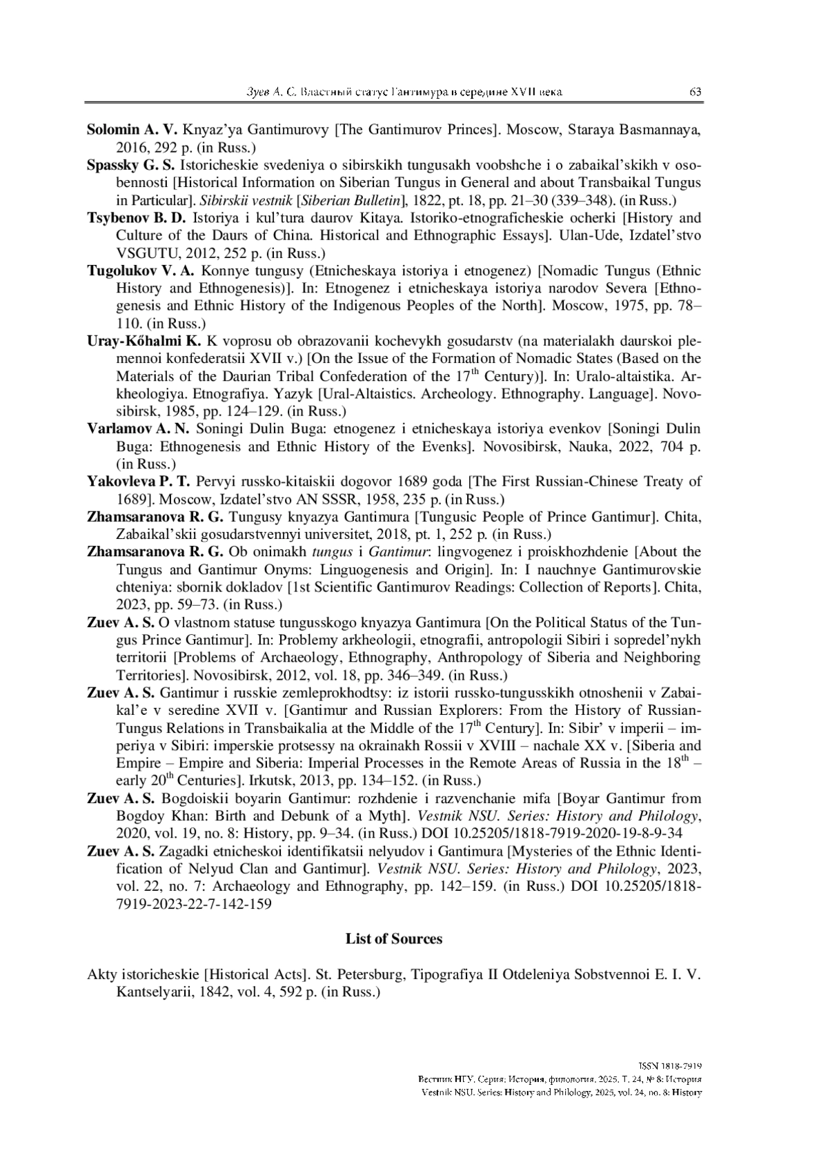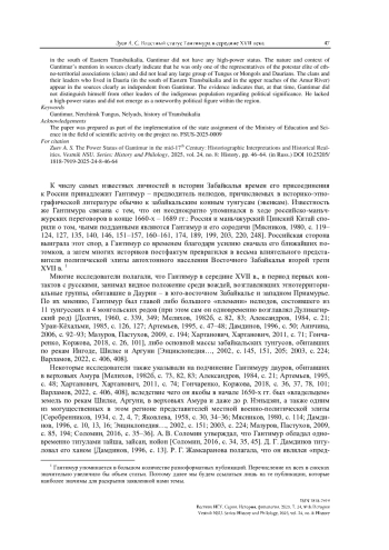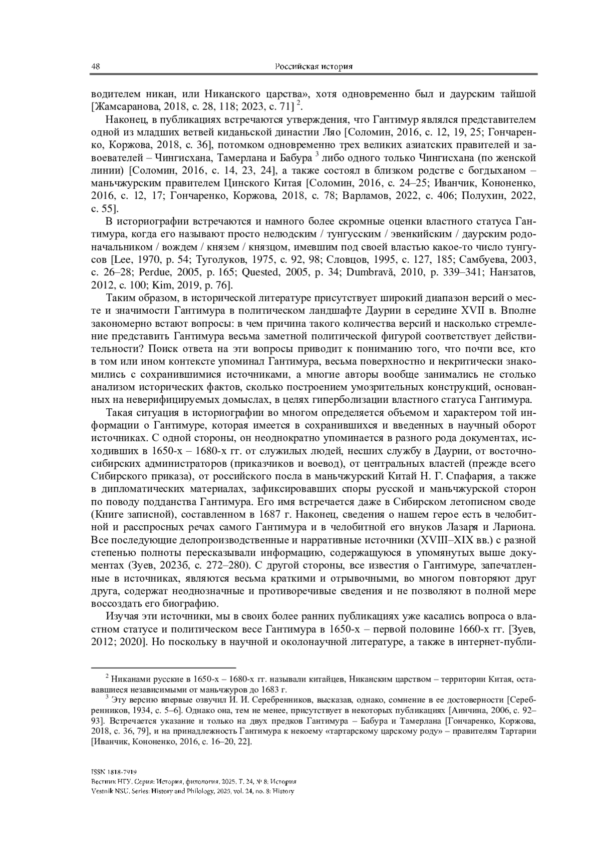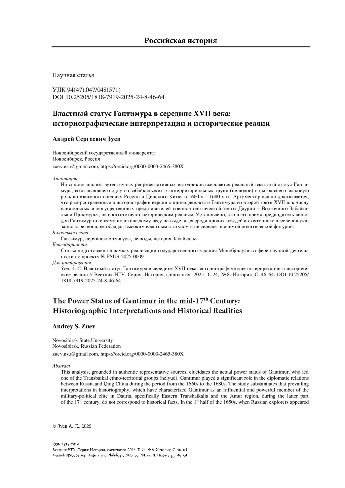 ЗУЕВ А. С. ВЛАСТНЫЙ СТАТУС ГАНТИМУРА В СЕРЕДИНЕ XVII ВЕКА: ИСТОРИОГРАФИЧЕСКИЕ ИНТЕРПРЕТАЦИИ И ИСТОРИЧЕСКИЕ РЕАЛИИ // ВЕСТНИК НГУ. СЕРИЯ: ИСТОРИЯ, ФИЛОЛОГИЯ. 2025. ТОМ 24, № 8