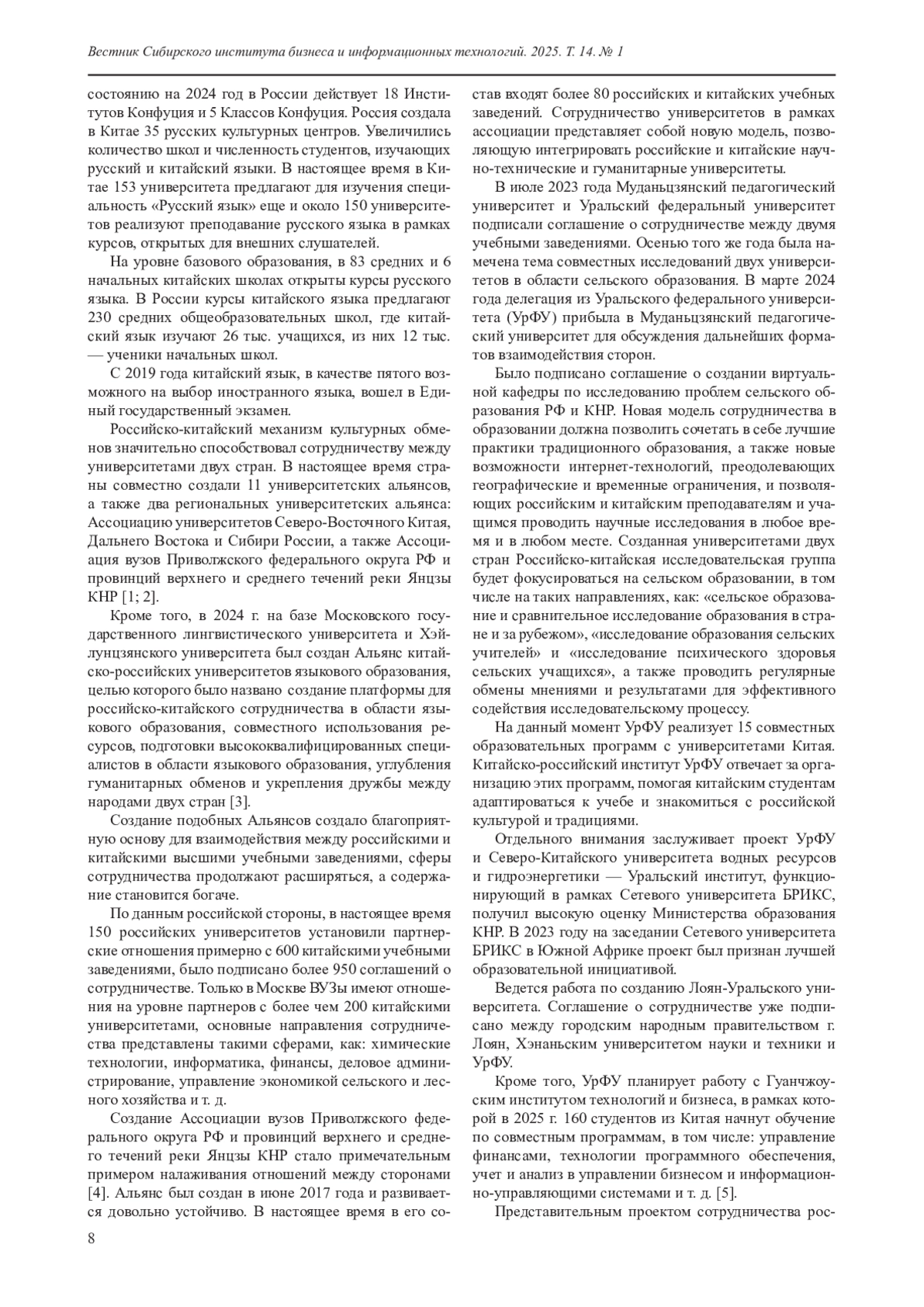 1. Представители 92-х университетов Северо-Востока Китая и России встретились в Харбине // Вести Приморья. 03.10.2023. URL: https://amp.vestiprim.ru/news/141485-predstaviteli-92-h-universitetov-severo-vostoka-kitaja-i-rossii-vstretilis-v-harbine.html (дата обращения: 29.01.2025).