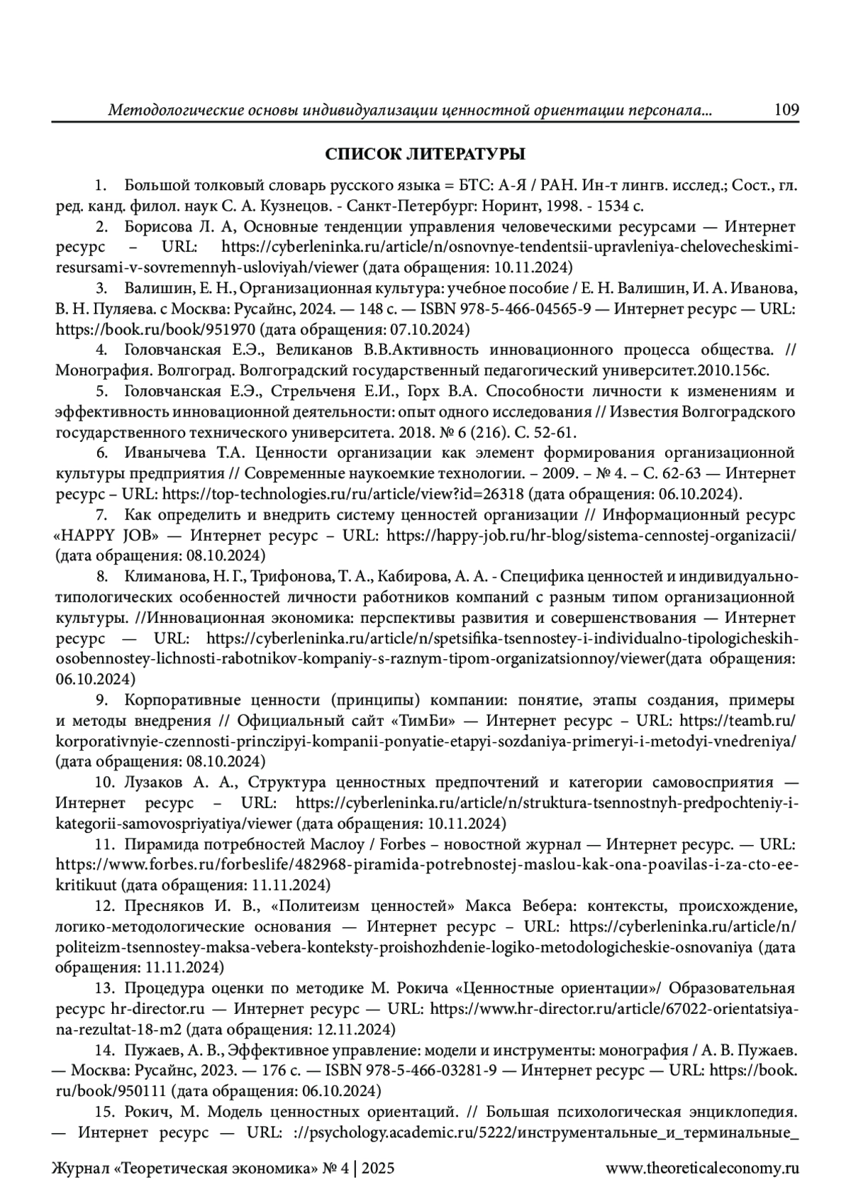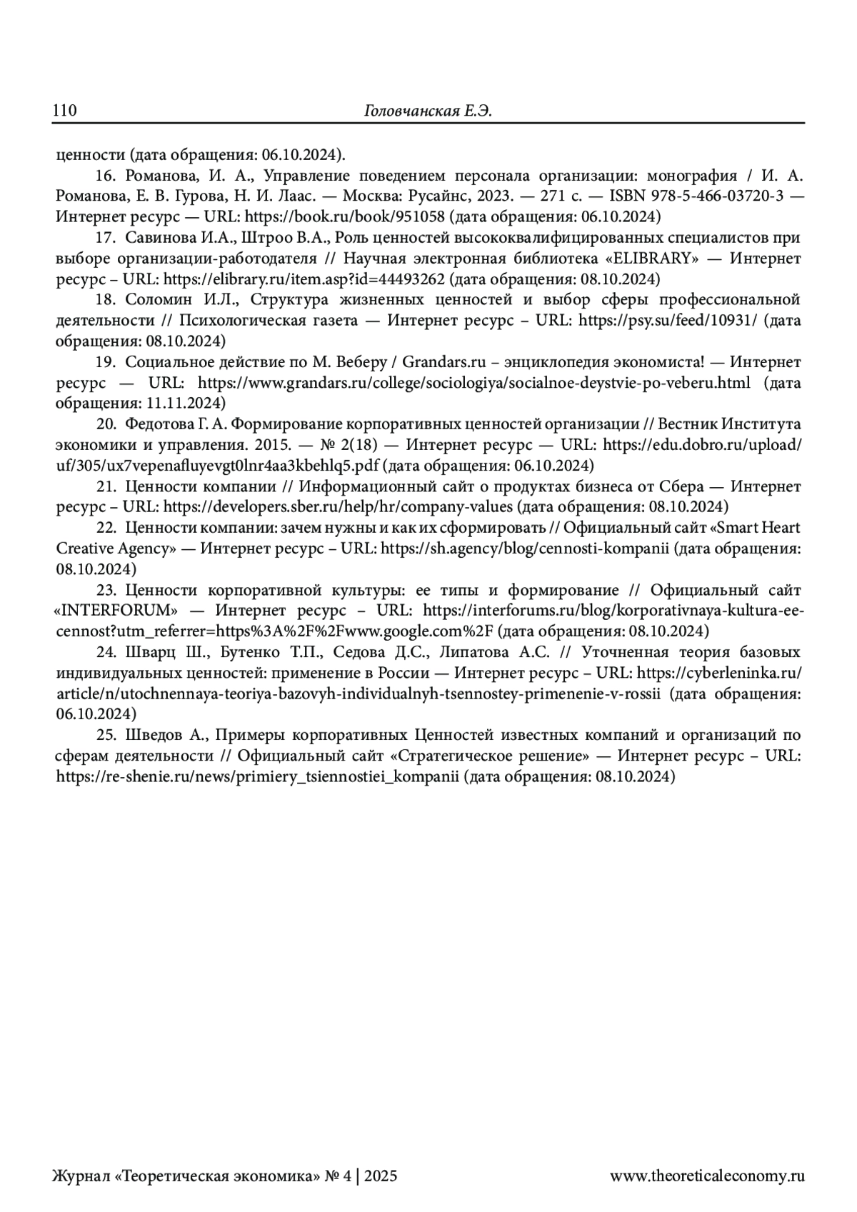 17. Савинова И.А., Штроо В.А., Роль ценностей высококвалифицированных специалистов при выборе организации-работодателя // Научная электронная библиотека “ELIBRARY” - Интернет ресурс - URL: https://elibrary.ru/item.asp?id=44493262 (дата обращения: 08.10.2024).