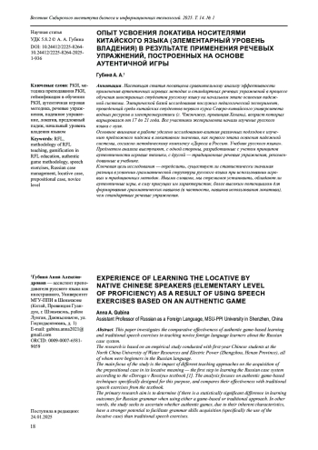 Настоящая статья посвящена сравнительному анализу эффективности применения аутентичных игровых методик и стандартных речевых упражнений в процессе обучения иностранных студентов русскому языку на начальном этапе освоения падежной системы. Эмпирической базой исследования послужил педагогический эксперимент, проведенный среди китайских студентов первого курса Северо-китайского университета водных ресурсов и электроэнергетики (г. Чжэнчжоу, провинция Хенань), возраст которых варьировался от 17 до 21 года. Все участники эксперимента начали изучение русского языка с нуля.