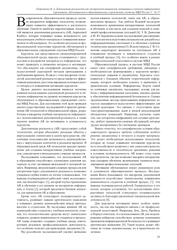 Статья: ДОПОЛНЕННАЯ РЕАЛЬНОСТЬ КАК ИНСТРУМЕНТ ПОВЫШЕНИЯ МОТИВАЦИИ В ИЗУЧЕНИИ ИНФОРМАТИКИ КУРСАНТАМИ, ОБУЧАЮЩИМИСЯ В ОБРАЗОВАТЕЛЬНЫХ УЧРЕЖДЕНИЯХ СИСТЕМЫ МВД РОССИИ (2025)