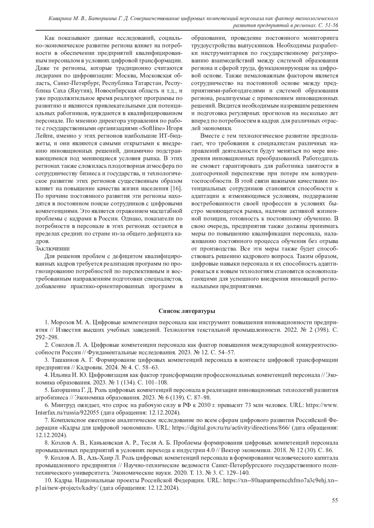 3. Ташкинов А. Г. Формирование цифровых компетенций персонала в контексте цифровой трансформации предприятия // Кадровик. 2024. № 4. С. 58-63.