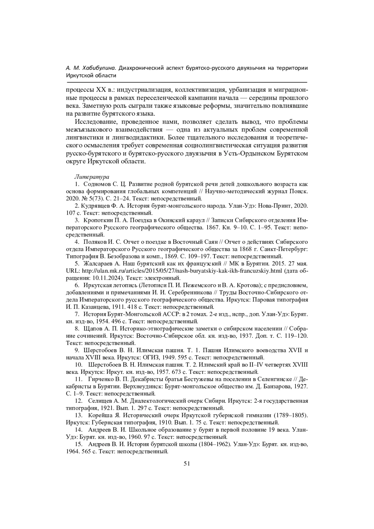 22. Бабушкин С. М. К проблеме русско-бурятского двуязычия // Вопросы бурятскорусского двуязычия: сборник научных трудов БГУ. Улан-Удэ: Изд-во Бурят. гос. ун-та, 1998. Вып. 2. С. 136. Текст: непосредственный.