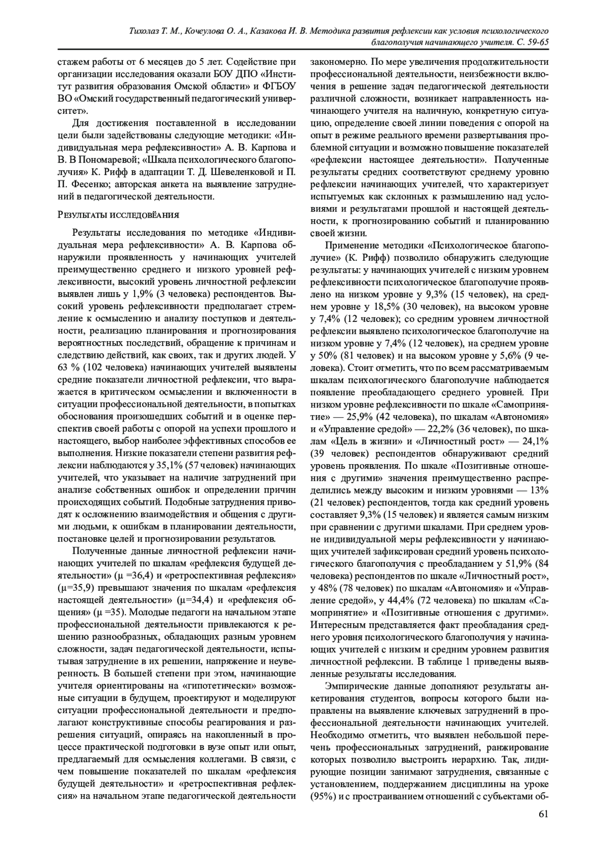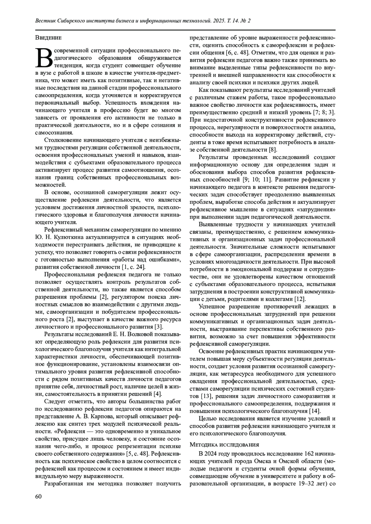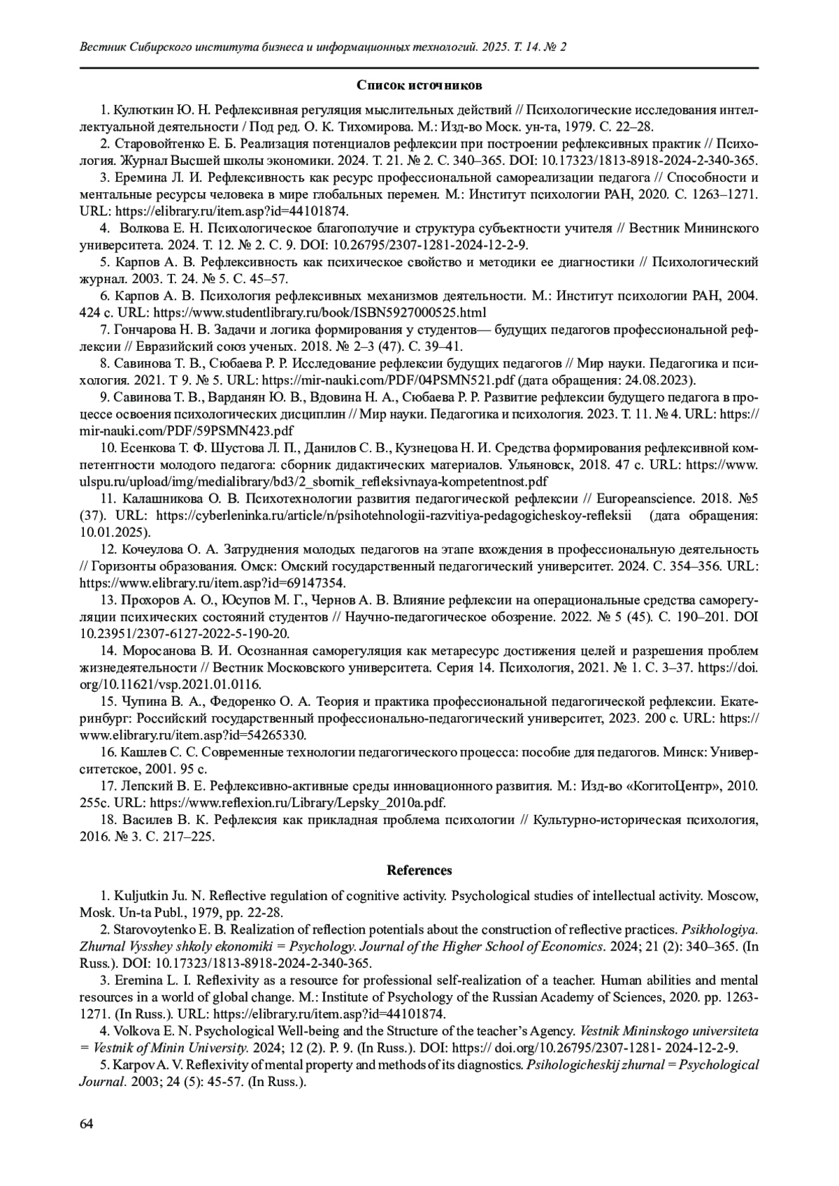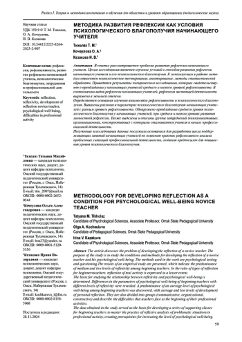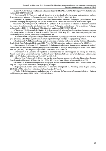8. Савинова Т. В., Сюбаева Р. Р. Исследование рефлексии будущих педагогов // Мир науки. Педагогика и психология. 2021. Т 9. № 5. URL: https://mir-nauki.com/PDF/04PSMN521.pdf (дата обращения: 24.08.2023).