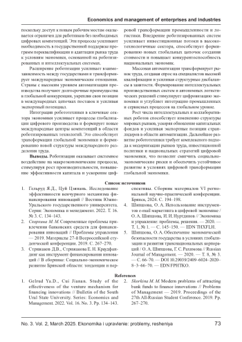 1. Гельруд Я.Д., Цуй Цзянань. Исследование эффективности венчурного механизма финансирования инноваций // Вестник ЮжноУральского государственного университета. Серия: Экономика и менеджмент. 2022. Т. 16.№ 3. С. 134-143. EDN: GZIEIA