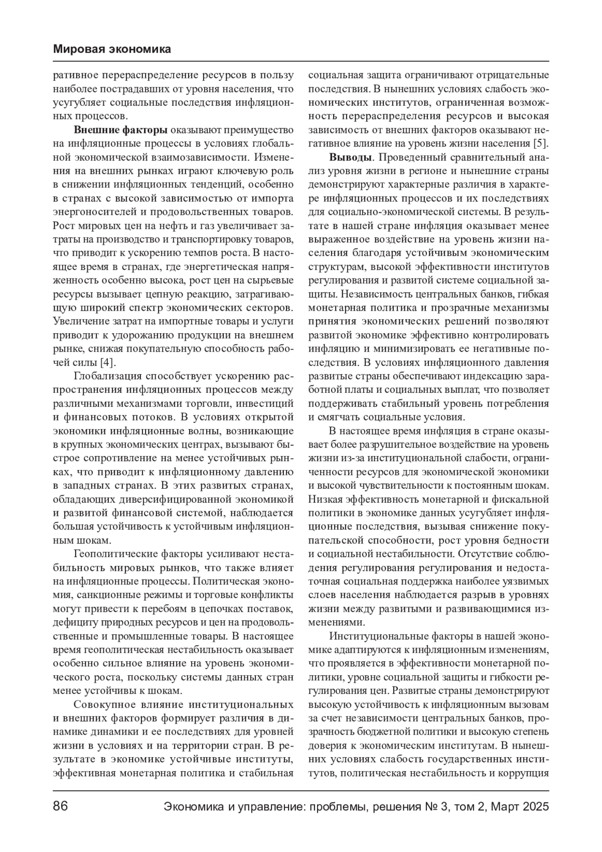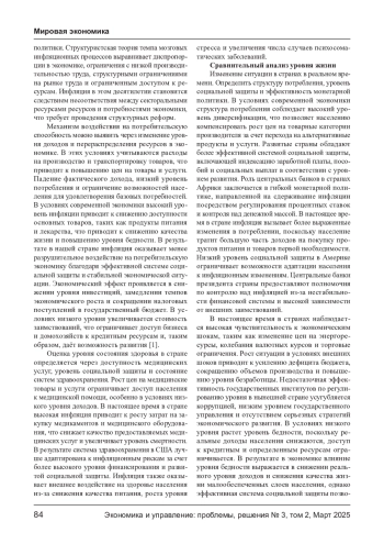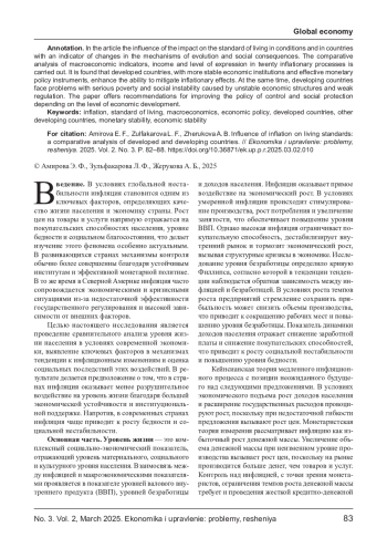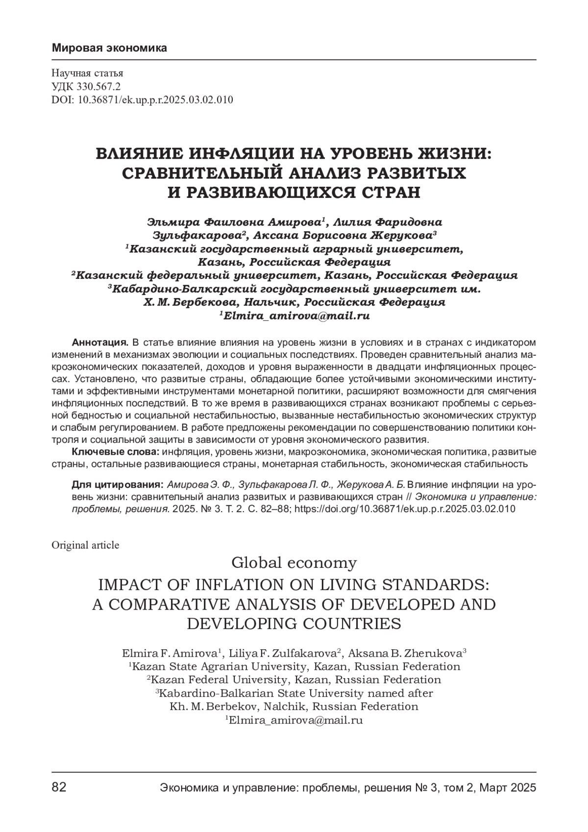 В статье влияние влияния на уровень жизни в условиях и в странах с индикатором изменений в механизмах эволюции и социальных последствиях. Проведен сравнительный анализ макроэкономических показателей, доходов и уровня выраженности в двадцати инфляционных процессах. Установлено, что развитые страны, обладающие более устойчивыми экономическими институтами и эффективными инструментами монетарной политики, расширяют возможности для смягчения инфляционных последствий. В то же время в развивающихся странах возникают проблемы с серьезной бедностью и социальной нестабильностью, вызванные нестабильностью экономических структур и слабым регулированием. В работе предложены рекомендации по совершенствованию политики контроля и социальной защиты в зависимости от уровня экономического развития.