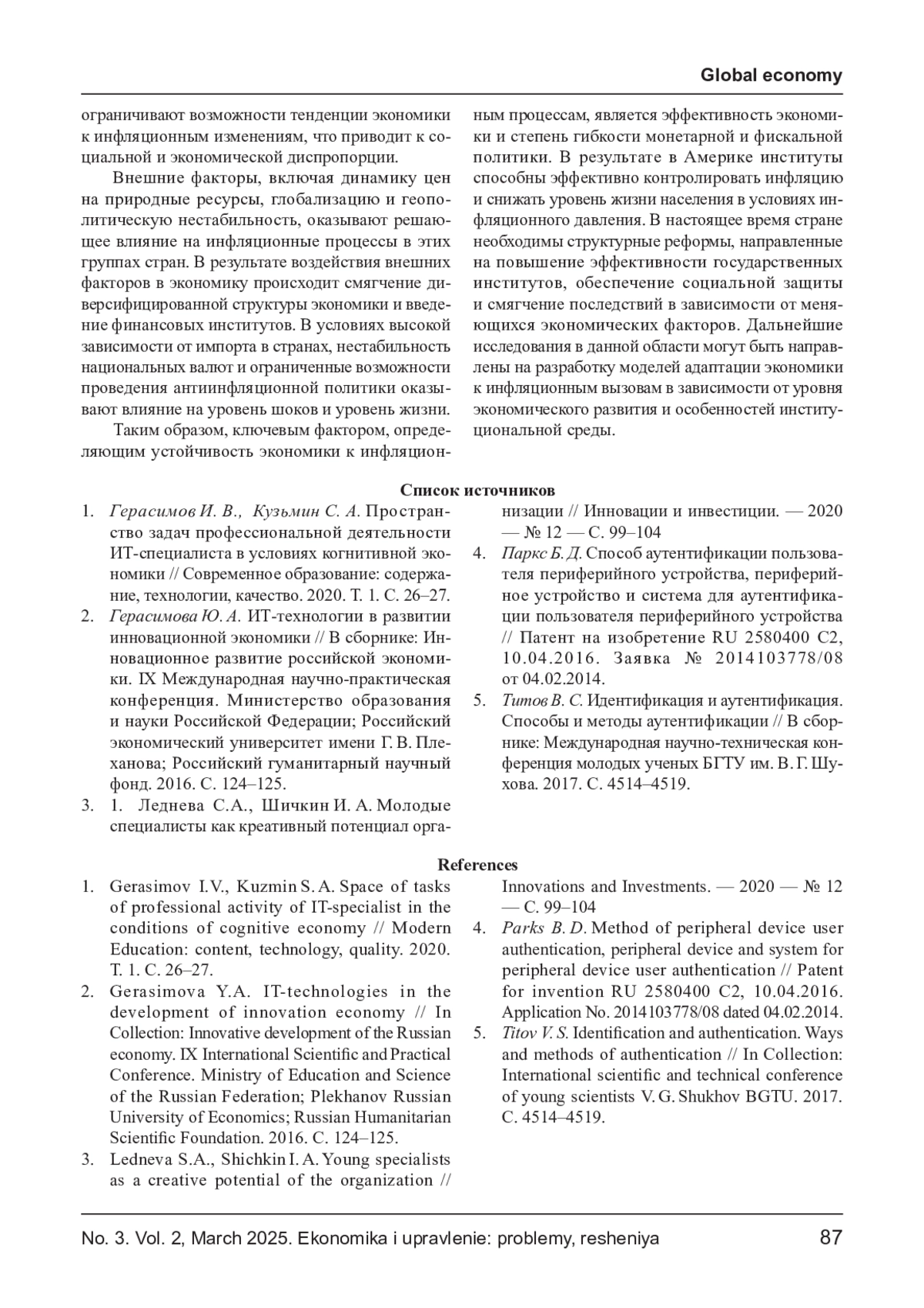 1. Герасимов И. В., Кузьмин С. А. Пространство задач профессиональной деятельности ИТ-специалиста в условиях когнитивной экономики // Современное образование: содержание, технологии, качество. 2020. Т. 1. С. 26-27. EDN: GGOOFS