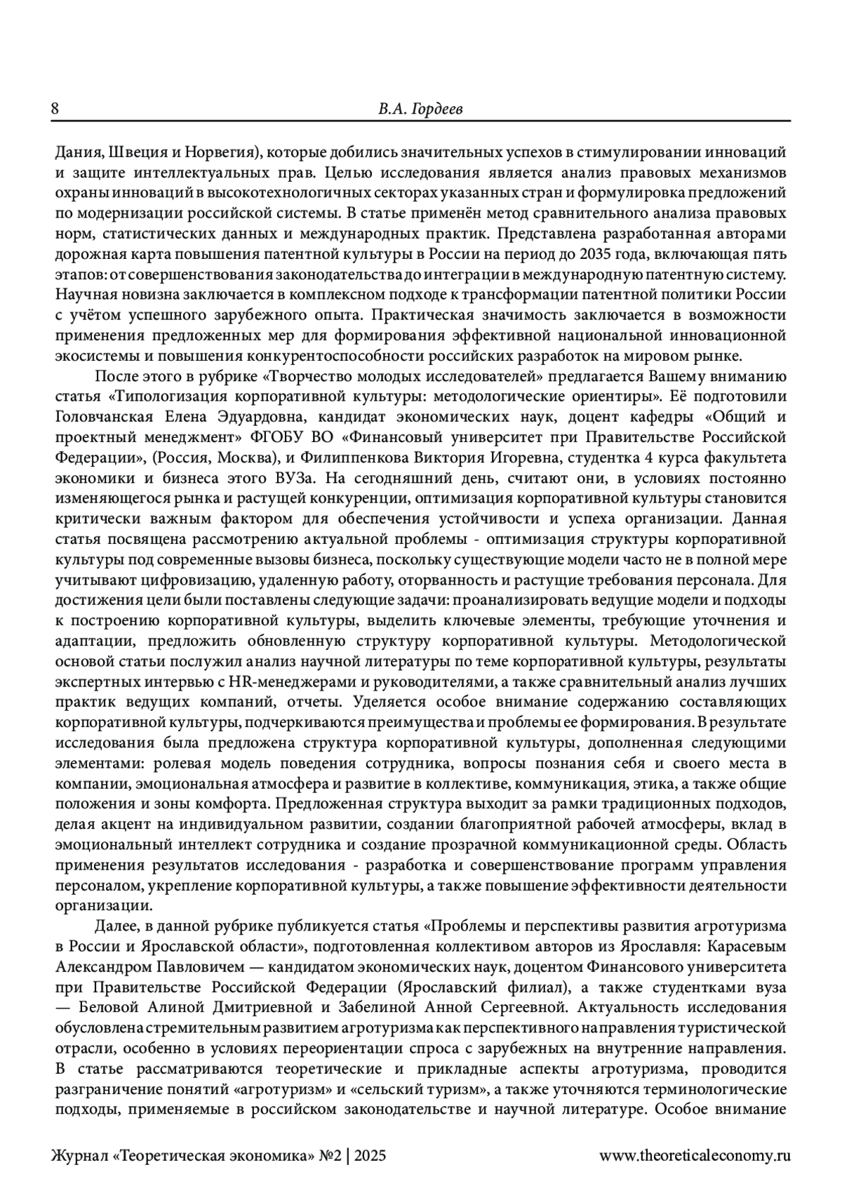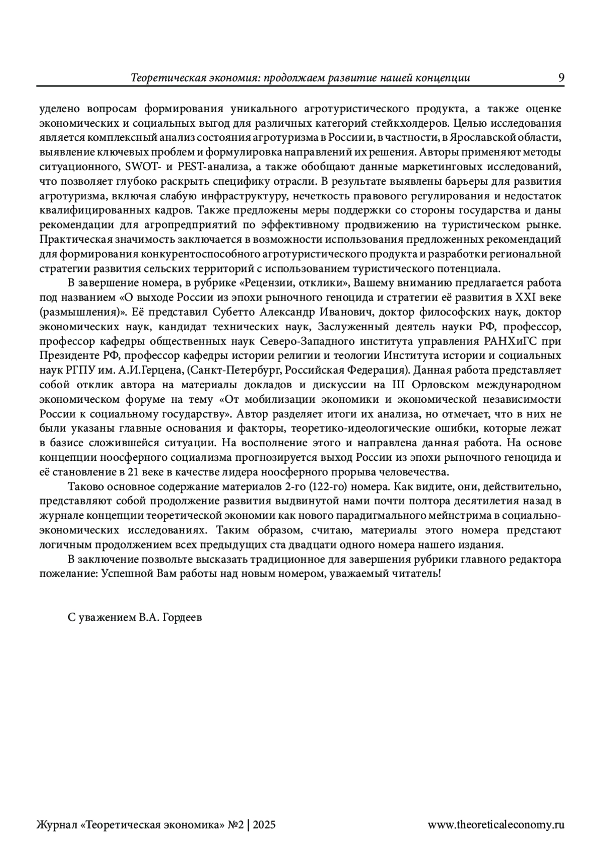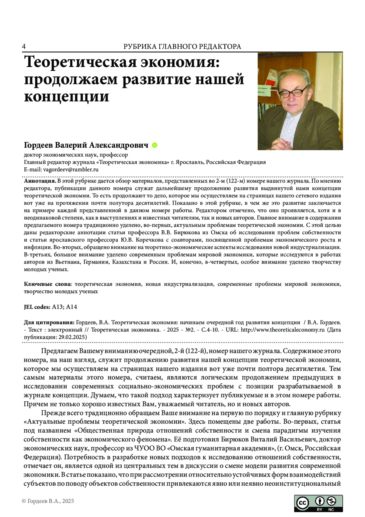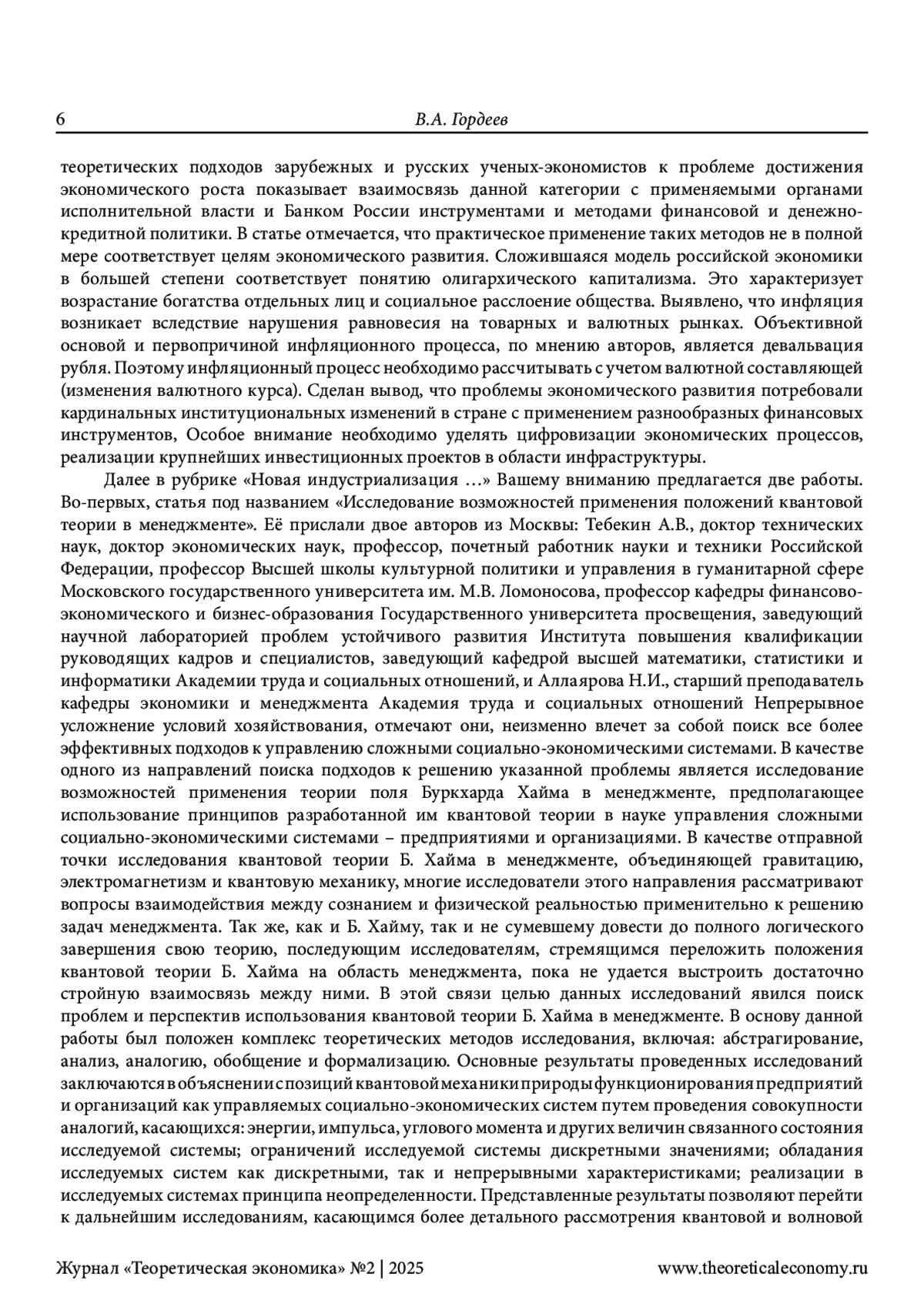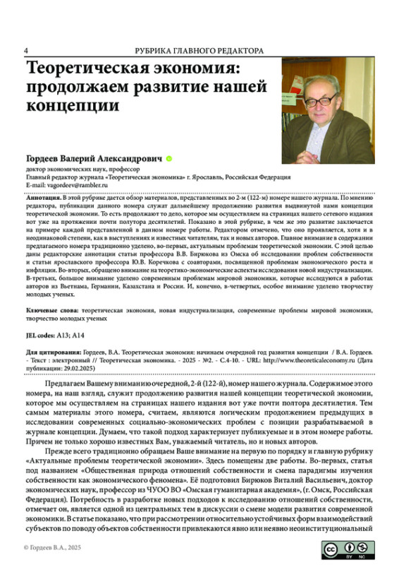 ГОРДЕЕВ В. А. ТЕОРЕТИЧЕСКАЯ ЭКОНОМИЯ: ПРОДОЛЖАЕМ РАЗВИТИЕ НАШЕЙ КОНЦЕПЦИИ // ТЕОРЕТИЧЕСКАЯ ЭКОНОМИКА. 2025. № 2 (122)