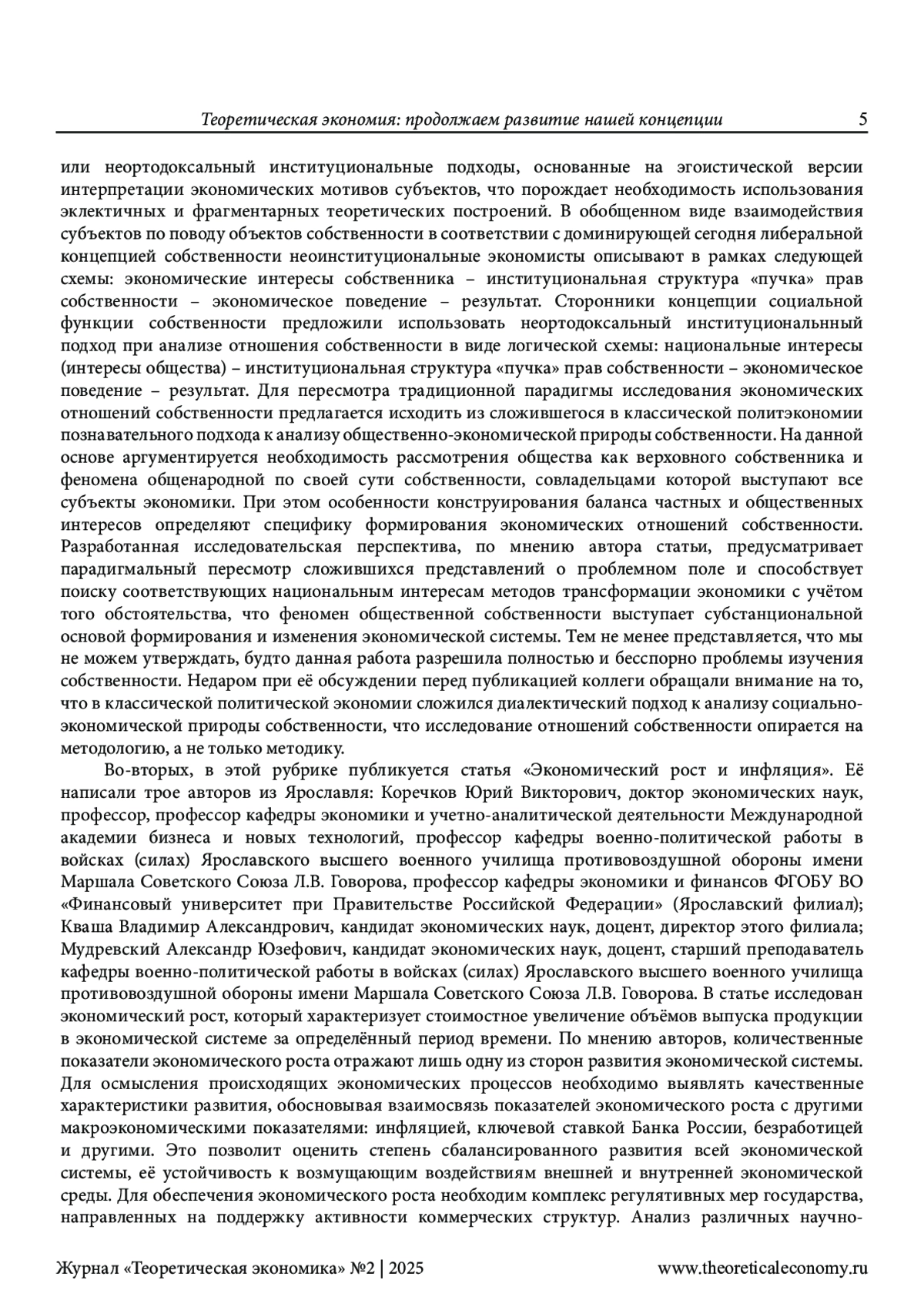 Статья: ТЕОРЕТИЧЕСКАЯ ЭКОНОМИЯ: ПРОДОЛЖАЕМ РАЗВИТИЕ НАШЕЙ КОНЦЕПЦИИ (2025)