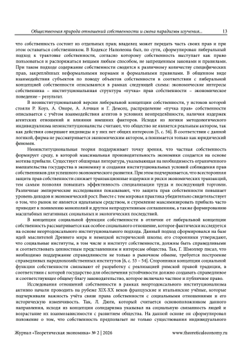 Статья: ОБЩЕСТВЕННАЯ ПРИРОДА ОТНОШЕНИЙ СОБСТВЕННОСТИ И СМЕНА ПАРАДИГМЫ ИЗУЧЕНИЯ СОБСТВЕННОСТИ КАК ЭКОНОМИЧЕСКОГО ФЕНОМЕНА (2025)