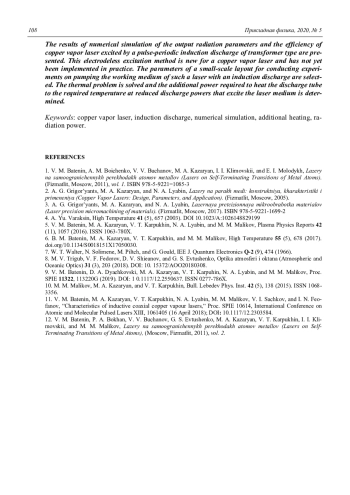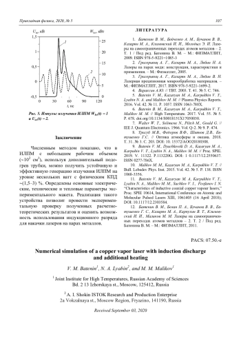 Батенин В. М., Лябин Н. А., Маликов М. М. Численное моделирование лазера на парах меди с индукционным разрядом и дополни-тельным подогревом 103