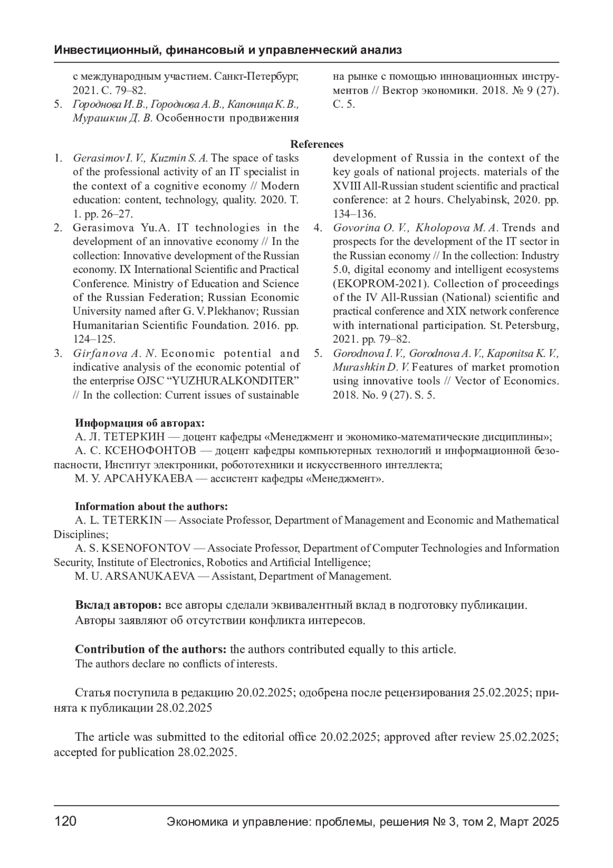 Журнал: ЭКОНОМИКА И УПРАВЛЕНИЕ: ПРОБЛЕМЫ, РЕШЕНИЯ