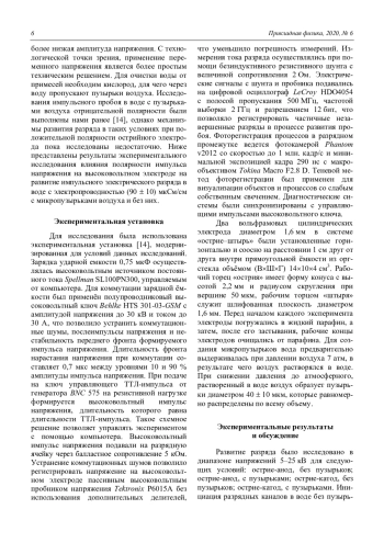 Панов В. А., Печеркин В. Я., Василяк Л. М., Ветчинин С. П. Влияние полярности электродов на развитие пробоя в проводящей воде с микропузырь-ками воздуха 5
