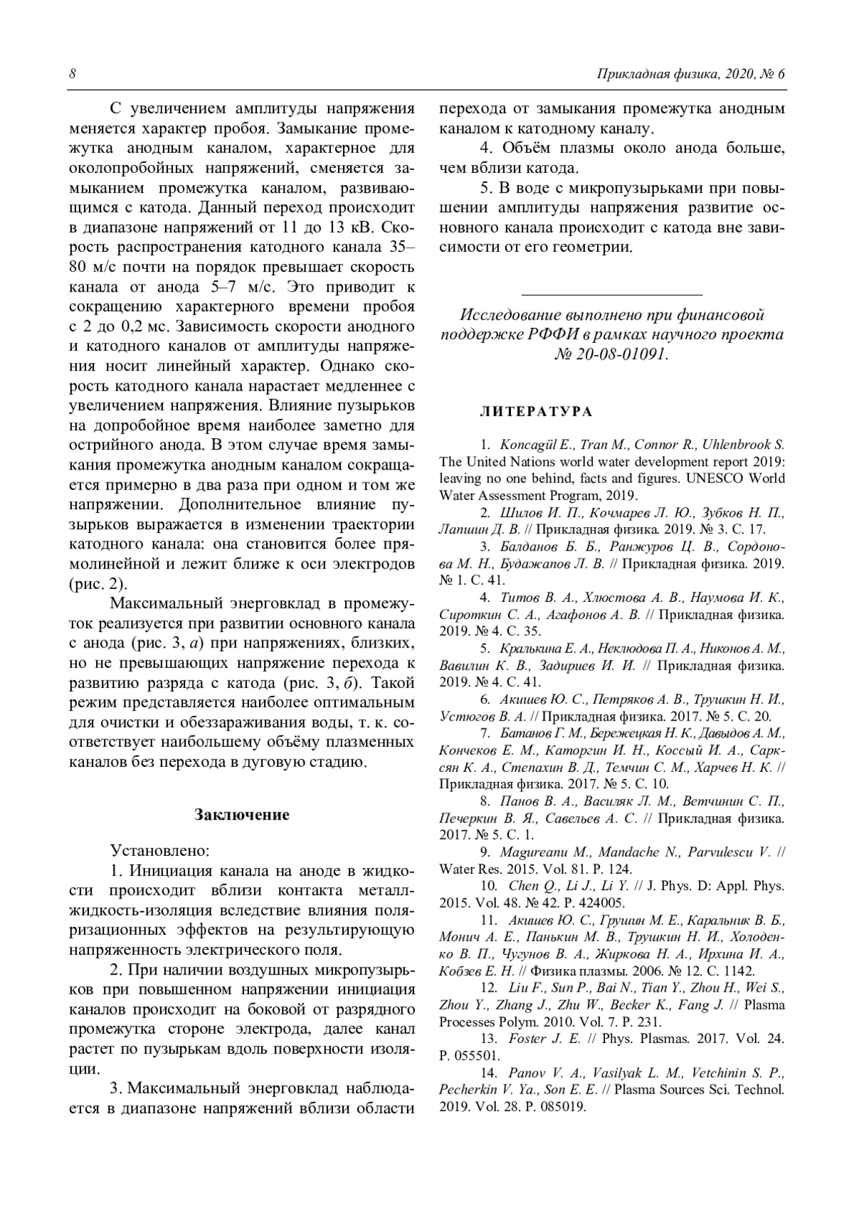 4. Титов В. А., Хлюстова А. В., Наумова И. К., Сироткин С. А., Агафонов А. В. // Прикладная физика. 2019. № 4. С. 35.