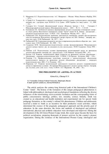 2. Грива О.А. Подготовка педагогов и психологов в Артеке / О.А. Грива // Практическая психология и социальная работа. - 2001. - №7. - С. 53-55.