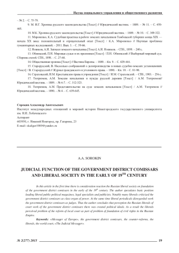 СОРОКИН А. А. СУДЕБНЫЕ ПОЛНОМОЧИЯ ИНСТИТУТА ЗЕМСКИХ НАЧАЛЬНИКОВ И ЛИБЕРАЛЬНАЯ ОБЩЕСТВЕННОСТЬ В КОНЦЕ XIX В. // ЭКОНОМИЧЕСКИЕ И ГУМАНИТАРНЫЕ НАУКИ. 2015. № 2 (277)