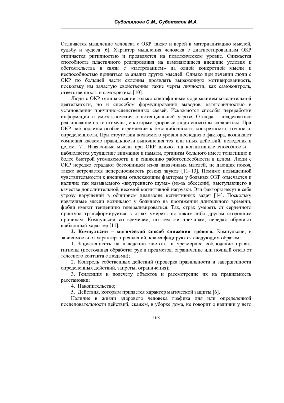 13. Краснов А. В. Взаимосвязь свойств внимания с тревожностью у лиц с признаками обсессивно-компульсивного расстройства / А. В. Краснов, Н. А. Поролло // Вестник ПГГПУ. Серия № 1. Психологические и педагогические науки. - 2023. - № 1. - С. 58-68.