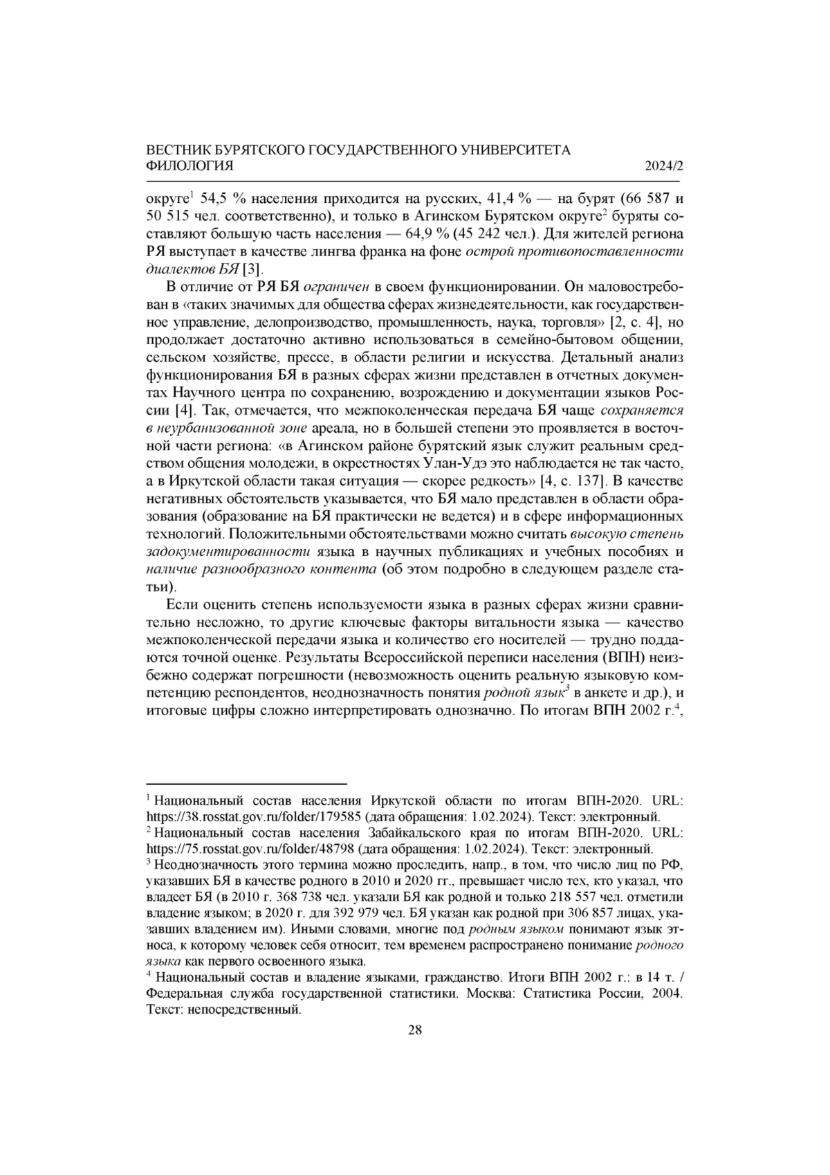 3. Дырхеева Г. А. Живая речь в Бурятии: к проблеме изучения (социолингвистический обзор) // Вестник Томского государственного университета. Филология. 2017. № 45. С. 77-88. Текст: непосредственный. EDN: XXQLRT