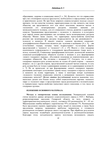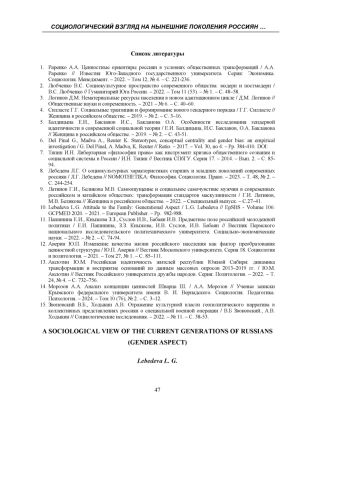 8. Лебедева Л.Г. О социокультурных характеристиках старших и младших поколений современных россиян / Л.Г. Лебедева // NOMOTHETIKA: Философия. Социология. Право. - 2023. - Т. 48, № 2. - С. 244-254. EDN: YTGTLM