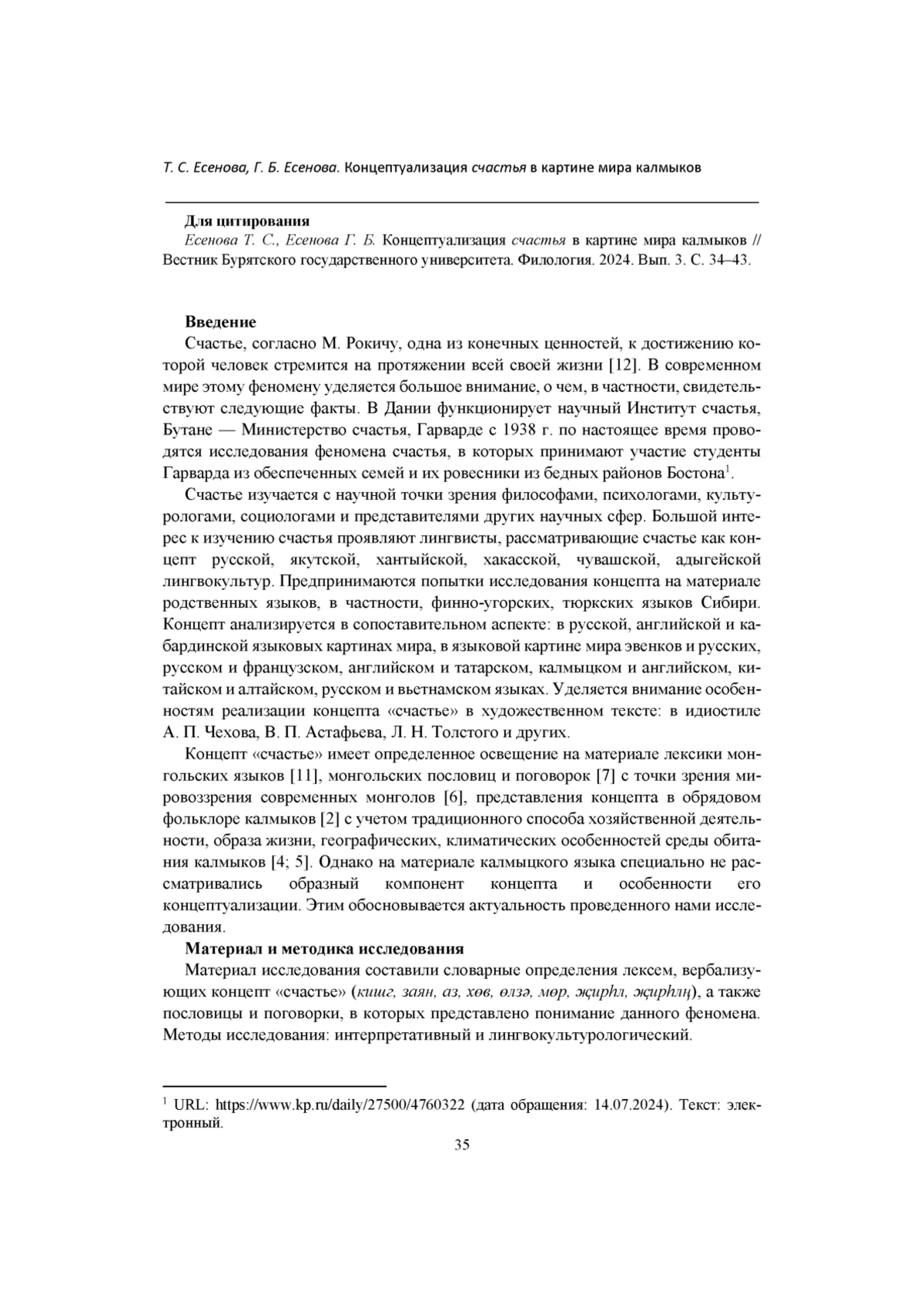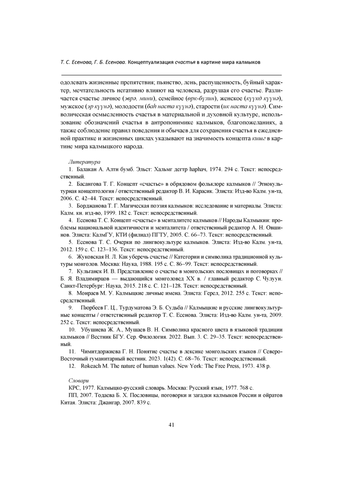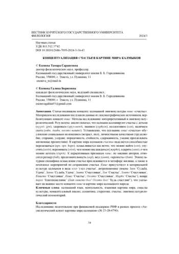 ЕСЕНОВА Т. С., ЕСЕНОВА Г. Б. КОНЦЕПТУАЛИЗАЦИЯ СЧАСТЬЯ В КАРТИНЕ МИРА КАЛМЫКОВ // ВЕСТНИК БУРЯТСКОГО ГОСУДАРСТВЕННОГО УНИВЕРСИТЕТА. ФИЛОЛОГИЯ. 2024. № 3