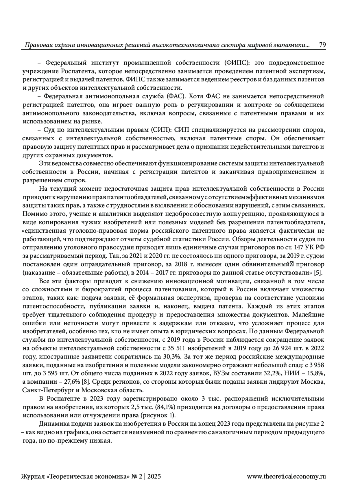 8. Роспатент 2022 в цифрах и фактах // официальный сайт Федеральной службы по интеллектуальной собственности [Электронный доступ] URL: https://rospatent.gov.ru/ru/about/stat (дата обращения: 15.01.2025).