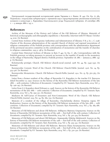 21. Письмо С.А. Копякова от 9 февраля 1998 г. // Источники по истории Куренёвских старообрядческих монастырей конца ХVIII-ХХ вв. / Сборник документов; сост. С.В. Таранец. Киев; Куренёвка, 2019. Т. 3. С. 299-301.