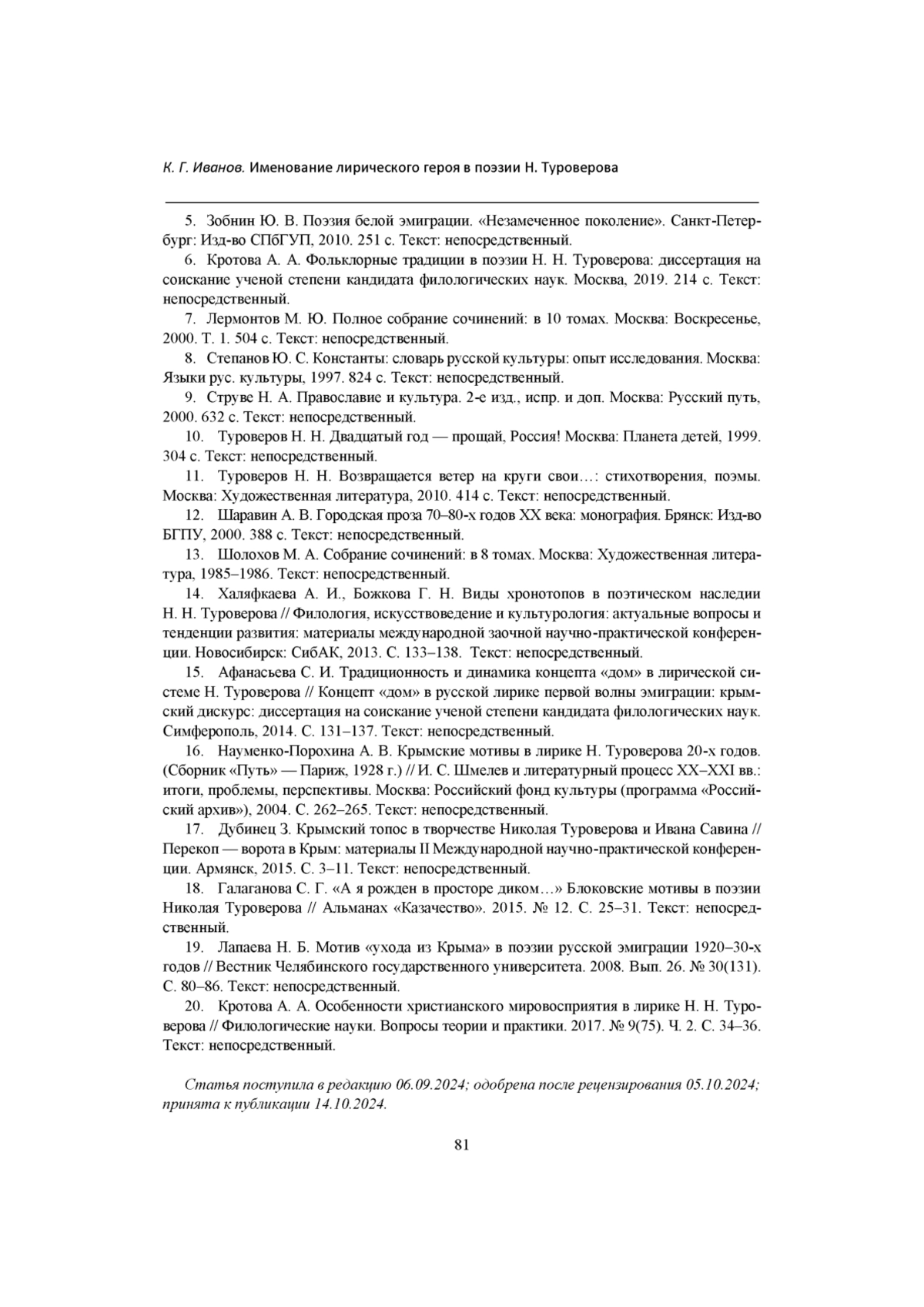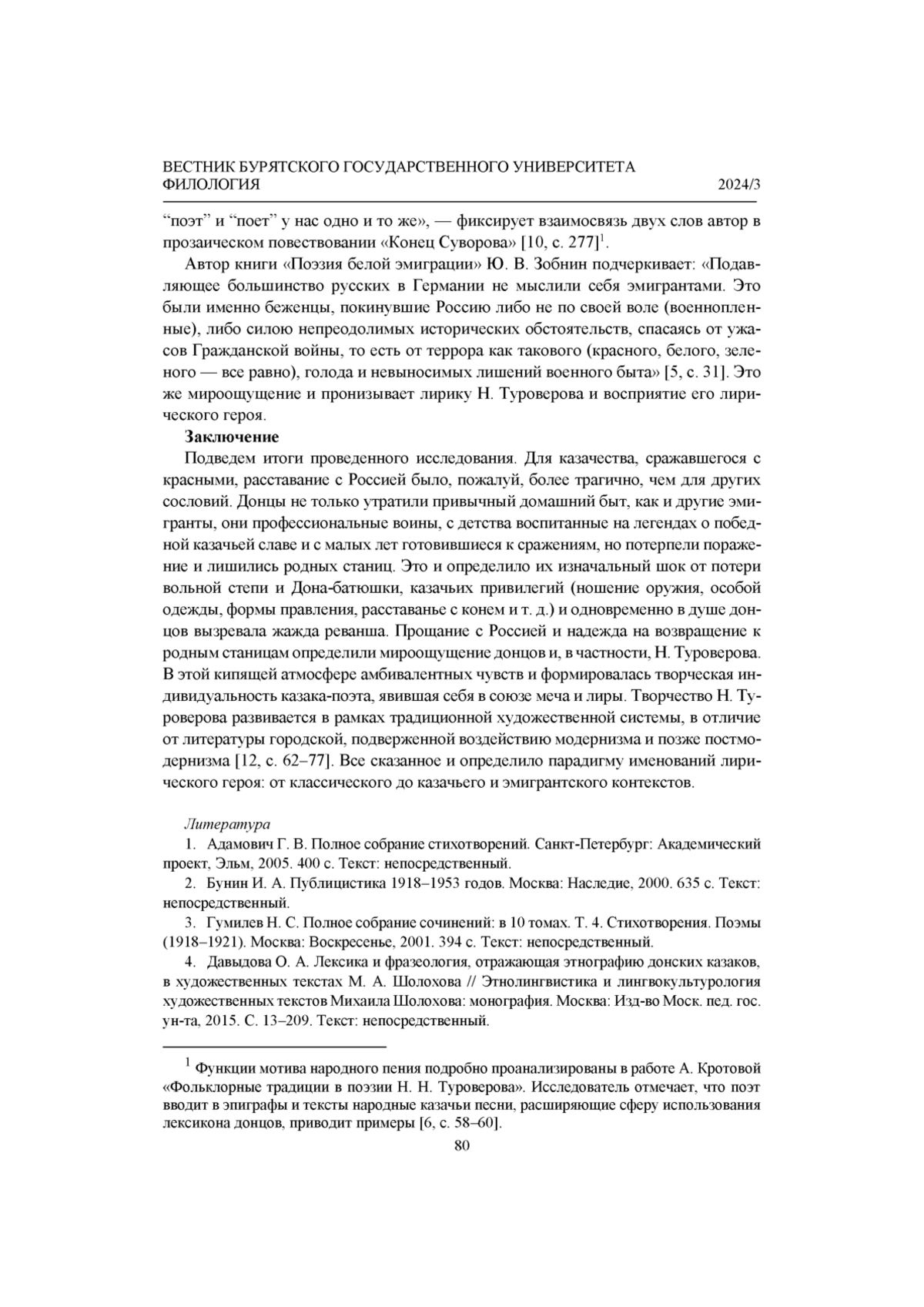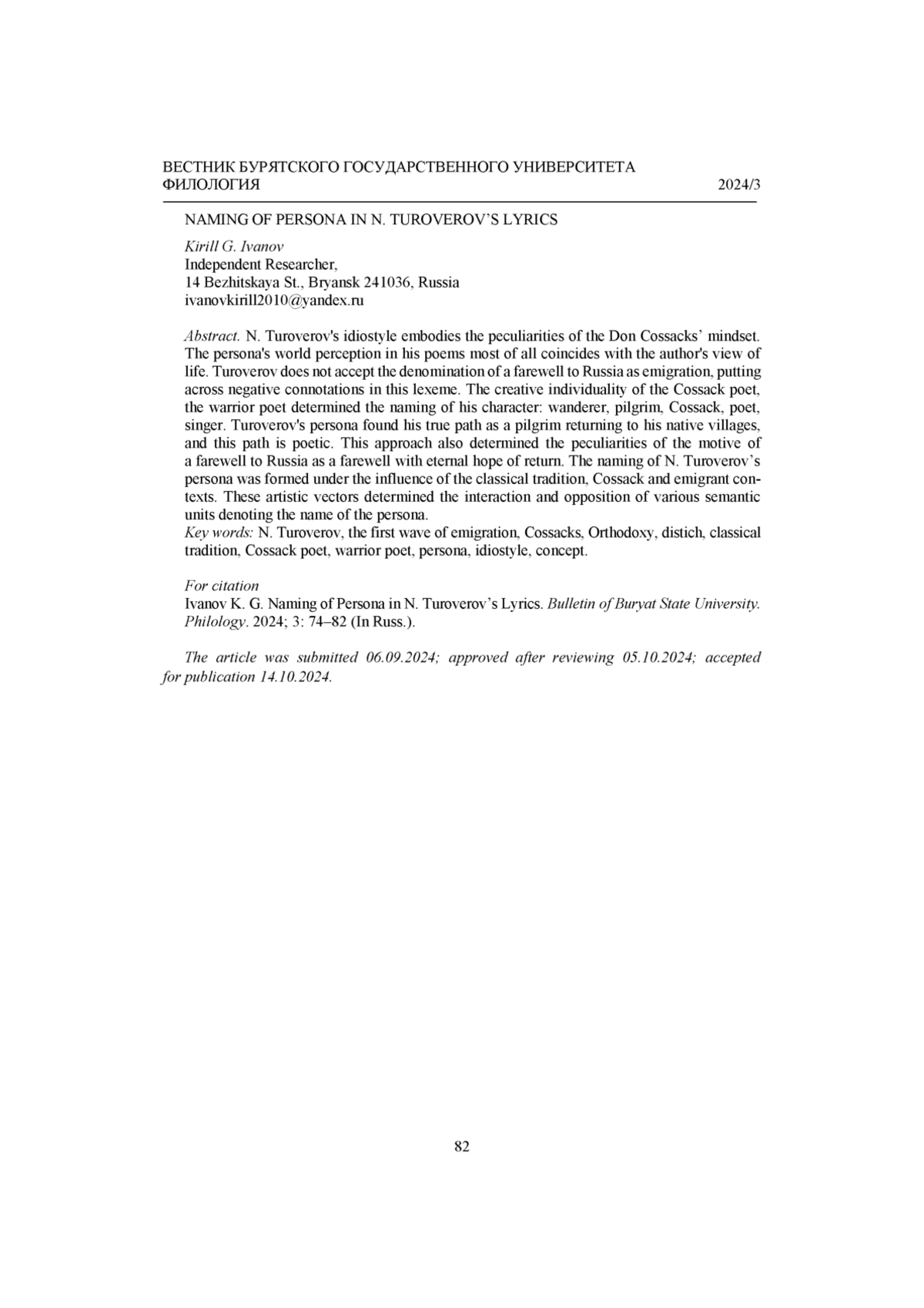ИВАНОВ К. Г. ИМЕНОВАНИЕ ЛИРИЧЕСКОГО ГЕРОЯ В ПОЭЗИИ Н. ТУРОВЕРОВА // ВЕСТНИК БУРЯТСКОГО ГОСУДАРСТВЕННОГО УНИВЕРСИТЕТА. ФИЛОЛОГИЯ. 2024. № 3