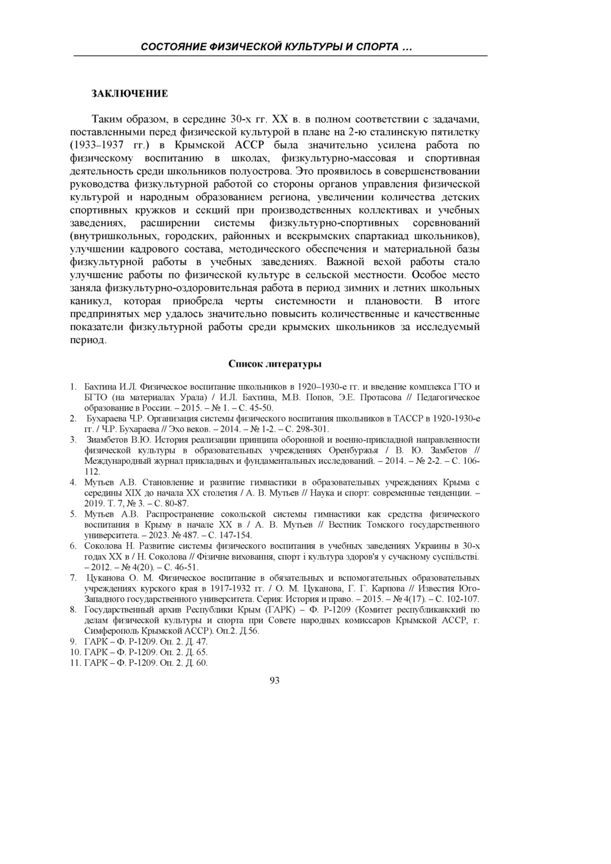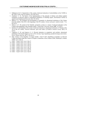 Статья: СОСТОЯНИЕ ФИЗИЧЕСКОЙ КУЛЬТУРЫ И СПОРТА СРЕДИ КРЫМСКИХ ШКОЛЬНИКОВ В СЕРЕДИНЕ 30-Х ГОДОВ ХХ ВЕКА (2025)