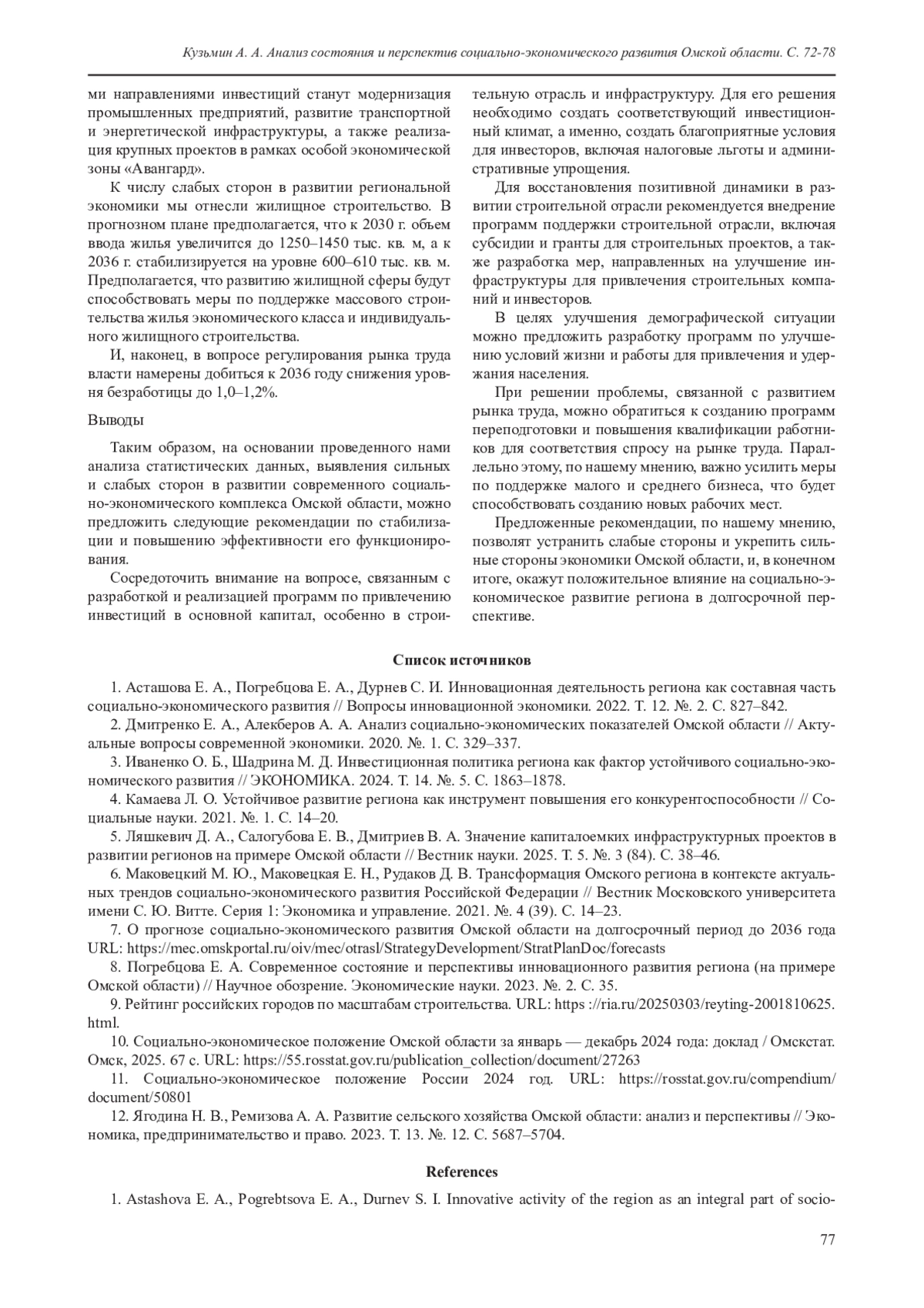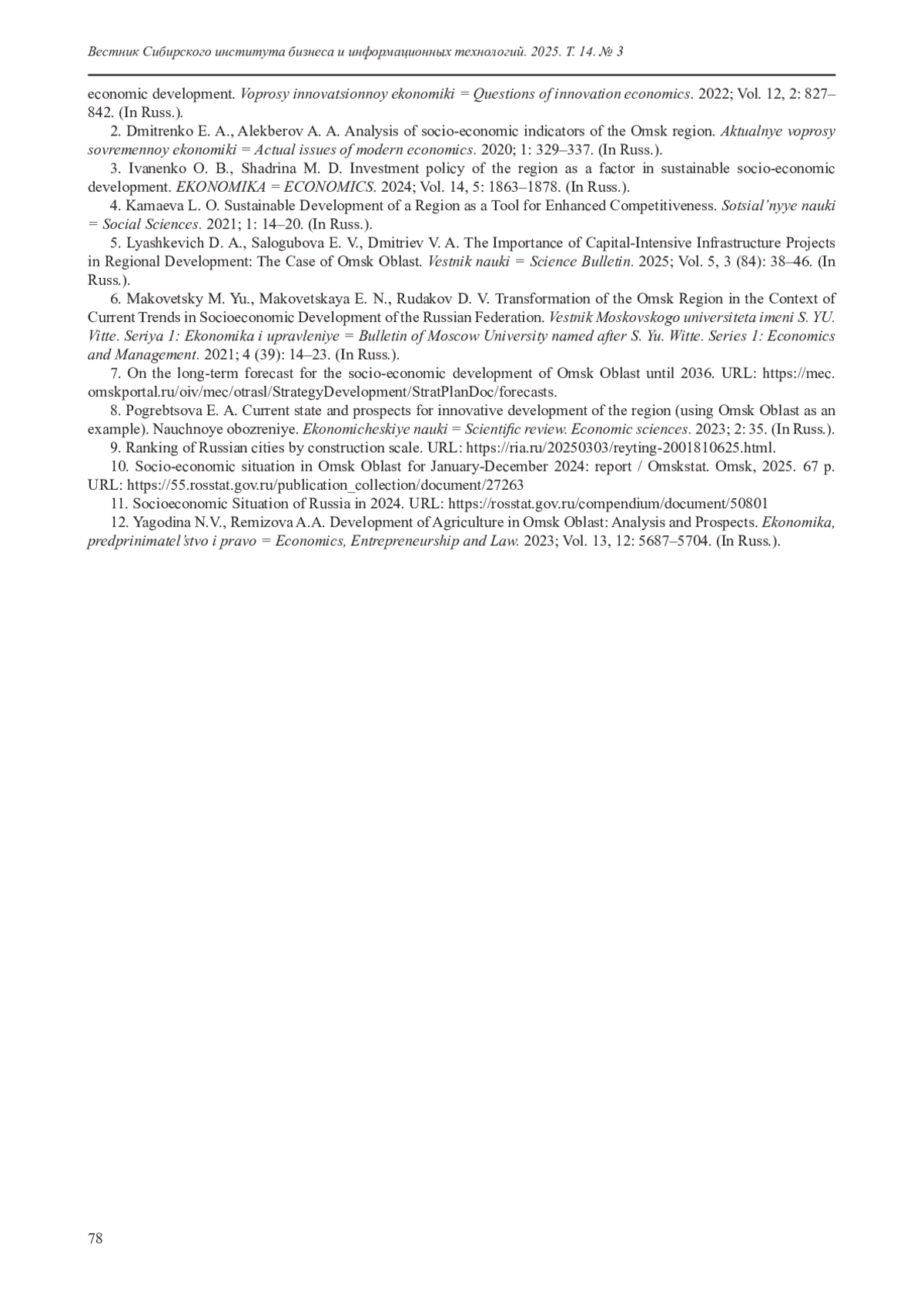 5. Ляшкевич Д. А., Салогубова Е. В., Дмитриев В. А. Значение капиталоемких инфраструктурных проектов в развитии регионов на примере Омской области // Вестник науки. 2025. Т. 5. №. 3 (84). С. 38-46.
